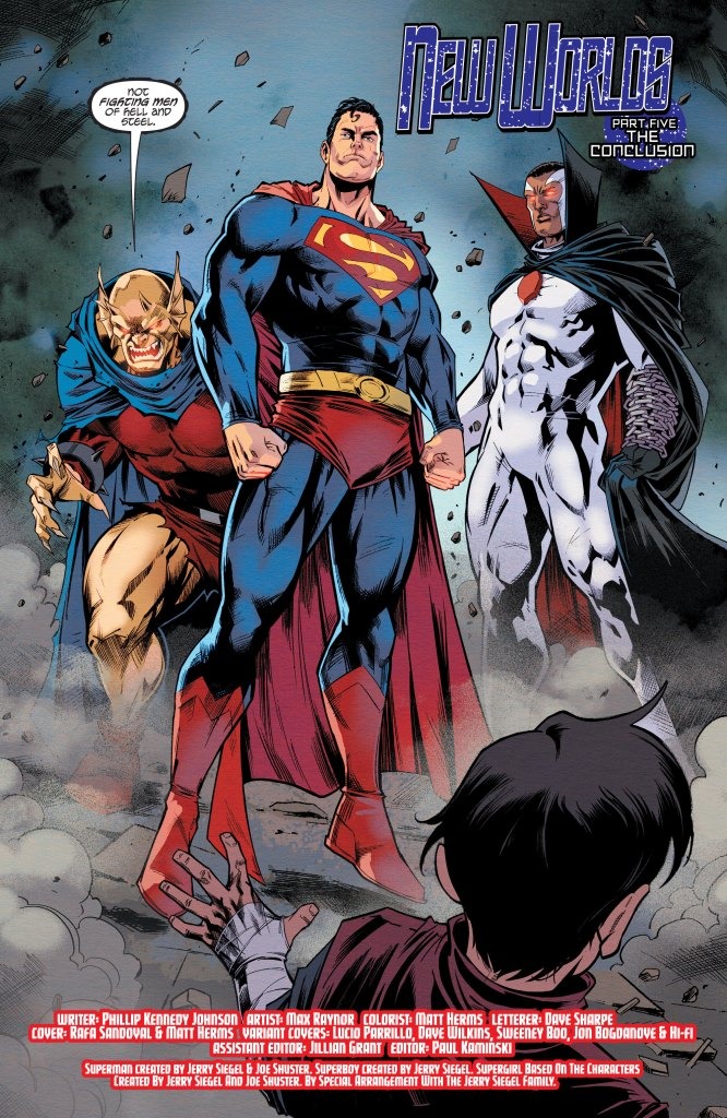 Norah Stone’s true form has been revealed, her gateway between worlds is opened, and the invasion of Earth has begun! As the Multiverse’s two most powerful families clash above Metropolis, which legacy will Otho-Ra choose? Will the followers of Blue Earth defend their treacherous leader, or their own home? It has all led to this! Three years of Action Comics storylines culminate in this pivotal, dramatic double-sized issue!