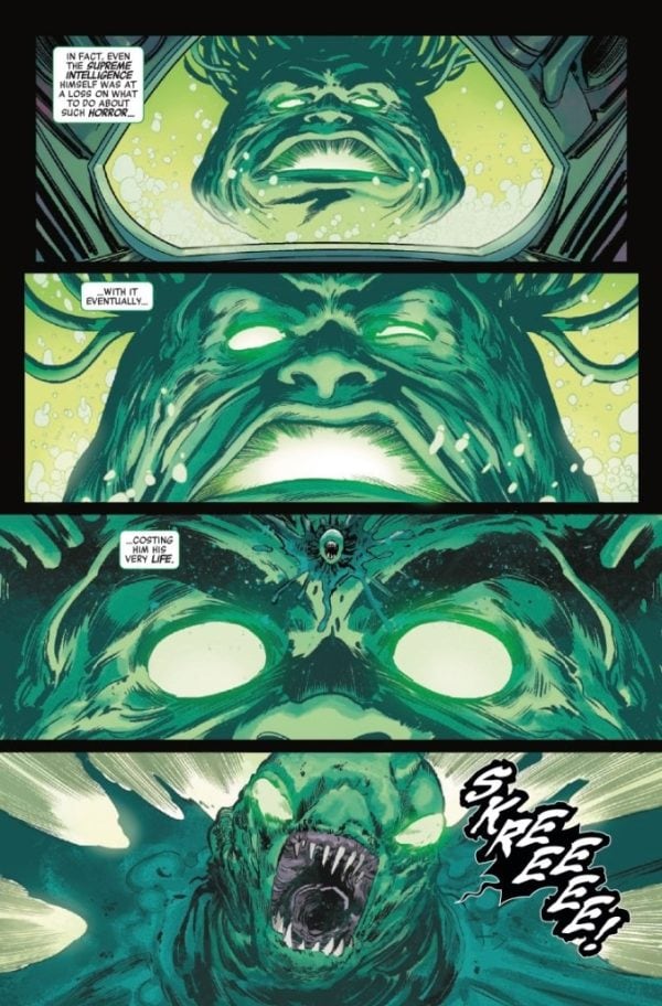 O CAPTAIN, MY CAPTAIN! As Captain Marvel joins Captain America in his fight against Hydra’s aliens, the secret and dark history between the Xenomorphs and the Kree is revealed! But will either Captain be able to contain an even bigger potential problem… a crazed Nick Fury with vengeance on his mind?