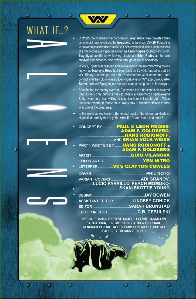 Marvel gives the What If…? treatment to the Alien franchise for the first time this coming week with the release of Aliens: What If…? #1, which asks the question, ‘What If… Carter Burke Had Lived?’. Check out the preview below…