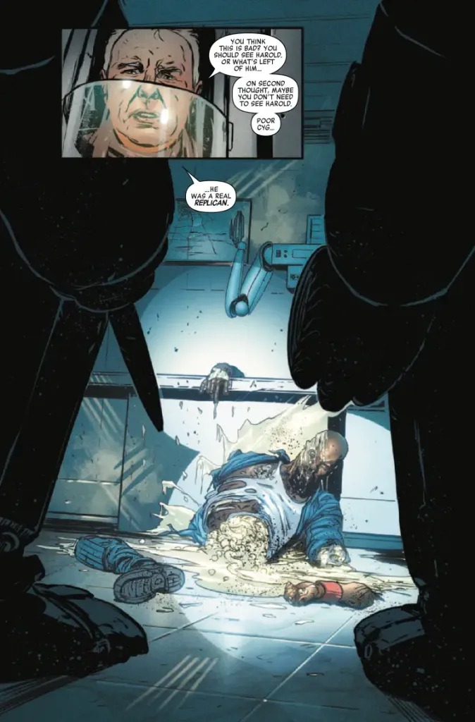 WHAT IF…CARTER BURKE HAD LIVED? Or more importantly, what if Carter Burke was about to die a different, even more horrible death?! Xenomorphs are loose on the mining asteroid where Burke’s made his small sad life and even-more-insignificant career. Panic is about to break out, slaughter to follow — and once again, it’s all Burke’s fault. Is this justice at last for the consummate company man? Or is there more to Burke’s character hidden beneath the mountain of mistakes?