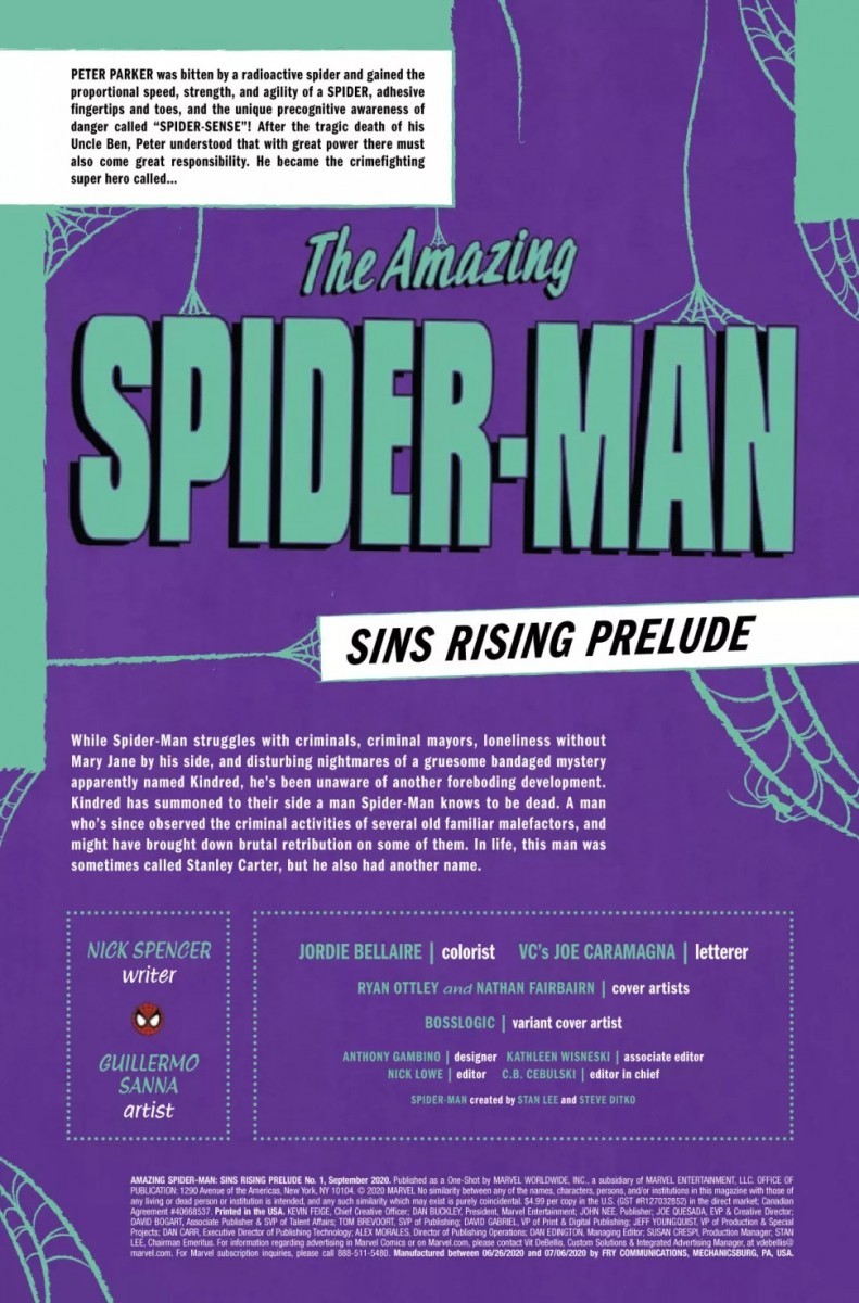 Amazing Spider-Man: Sins Rising Prelude #1 goes on sale on July 22nd, priced $4.99.