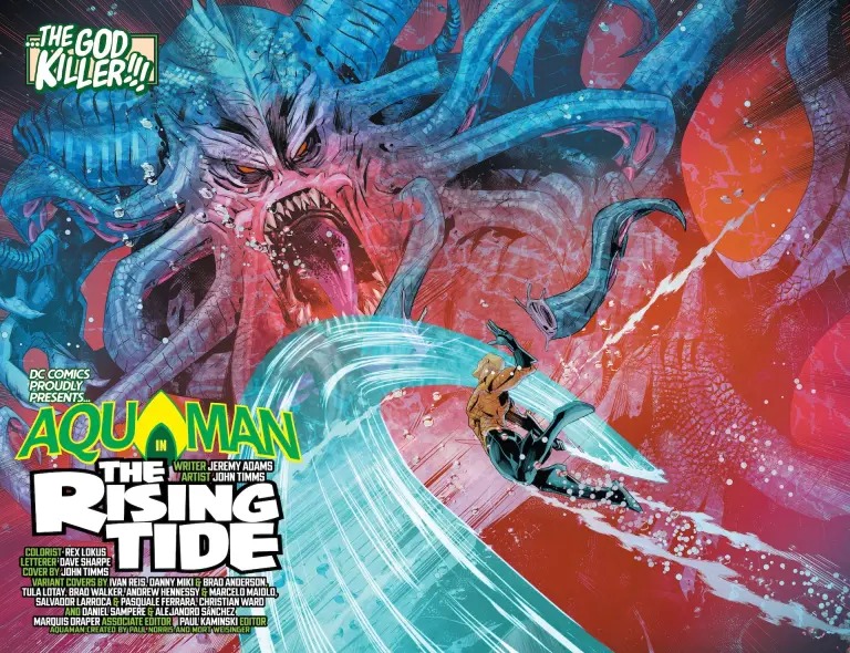 NEW POWERS, NEW MISSION… THE KING IS BACK, BABY! In the wake of Absolute Power, Arthur Curry’s powers have evolved to powerful new heights, and this is one king ready to use them to kick some serious butt. Mammoth water-construct Kaijus have emerged from each of the seven seas, and only Aquaman’s water-warping abilities can stop them — but not if they kill the good king in the process! Enter Dagon, Arthur’s guide on the quest to unlock the secrets of the “blue.” But what deadly secret awaits Arthur on his journey? It’s an all-new era for Aquaman by acclaimed creators Jeremy Adams (The Flash, Green Lantern) and John Timms (Action Comics) that will leave you cheering!