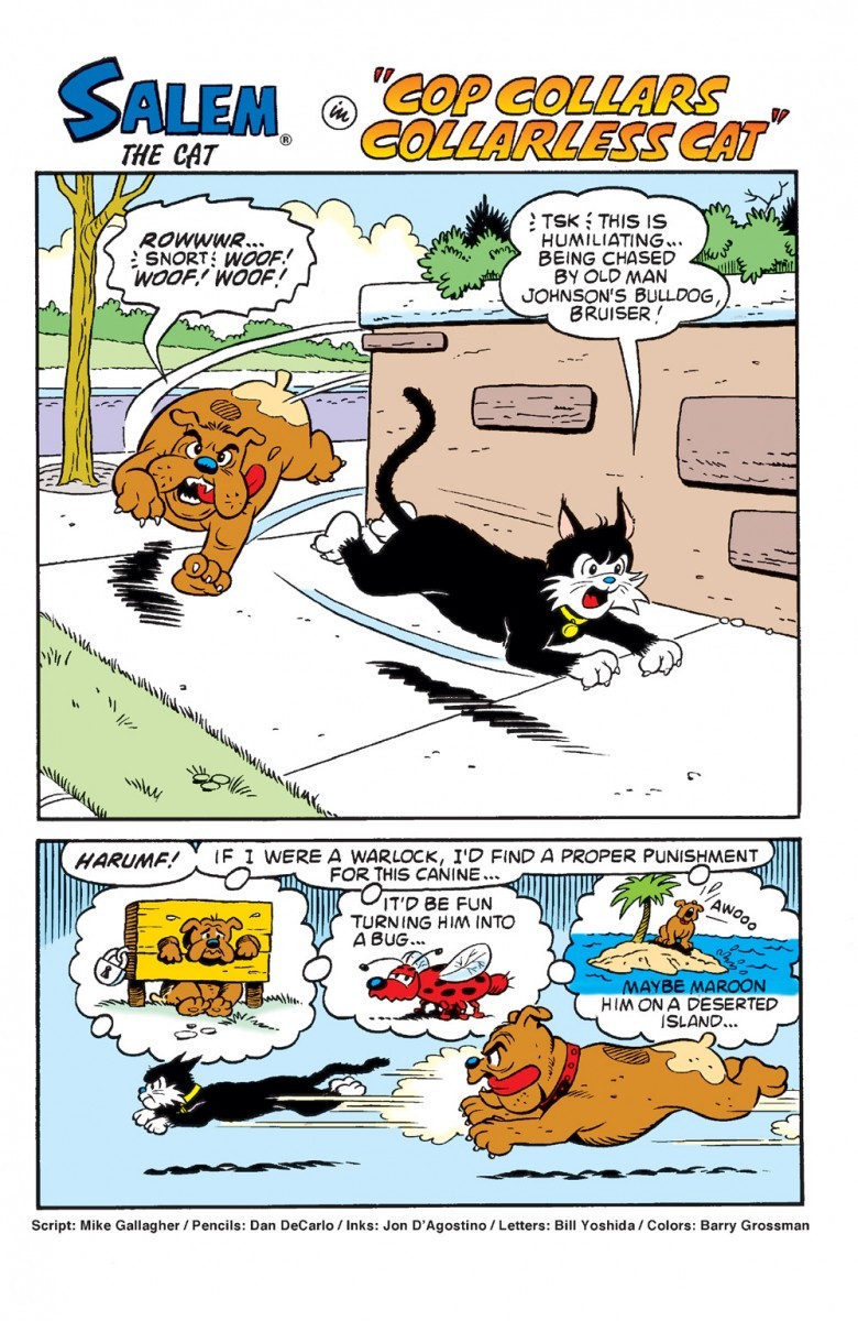 Sabrina’s furry familiar gets top billing in these fun action-adventure stories! Before he was a magical cat, Salem was an actual boy wizard! You’ll also meet his mother, Felicia, and scruffy Uncle Mort. Plus, a few classic tales of Salem’s cat adventures!