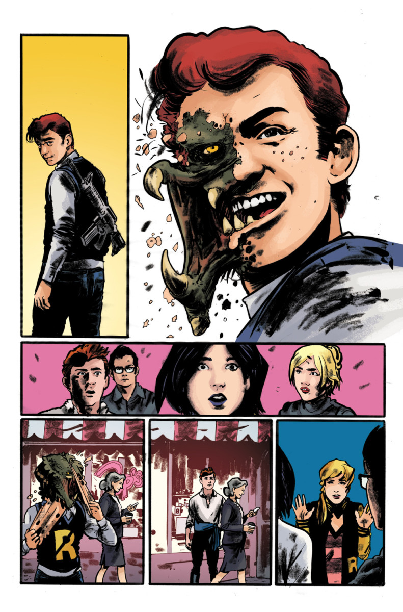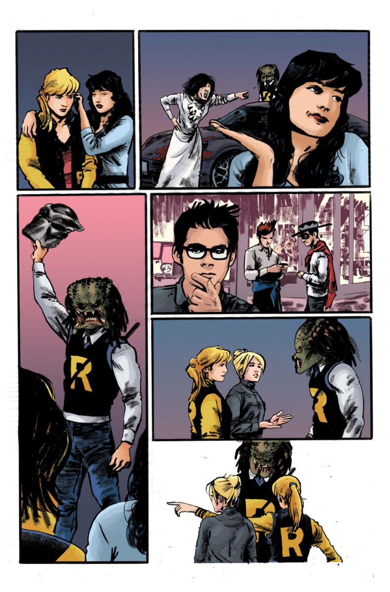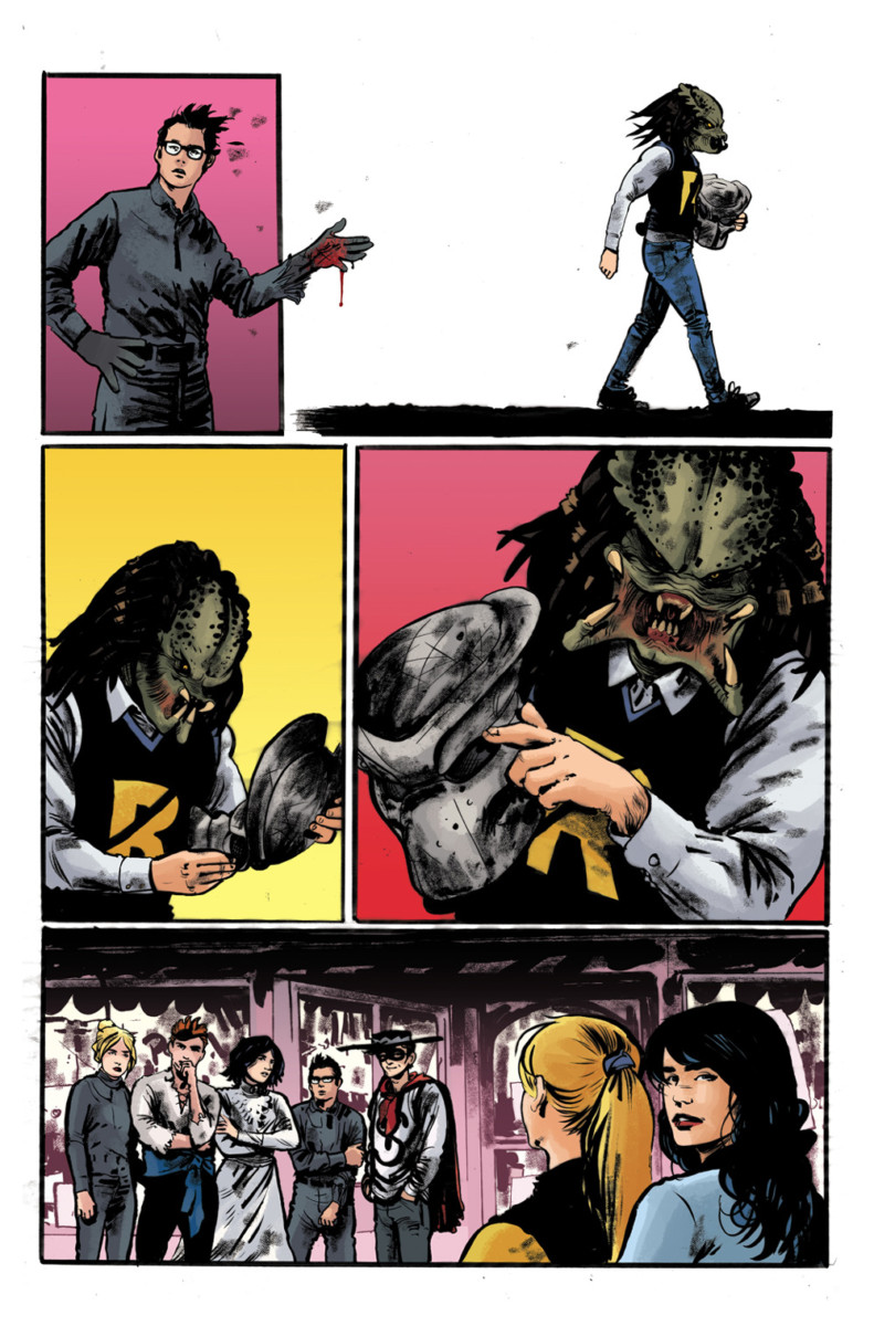 Our trios (new and old) are getting to know each other better—like Classic Betty and Veronica discovering that the newer versions of themselves actually AREN’T both trying to win over Archie’s affections. There’s a lot to take in in this brave, new world, but they’ve got a more pressing issue to deal with: Predator-Archie is quickly turning back into a Predator, and time is running out. Fortunately, the Riverdale Halloween Dance may be just the cover the gang(s) need.