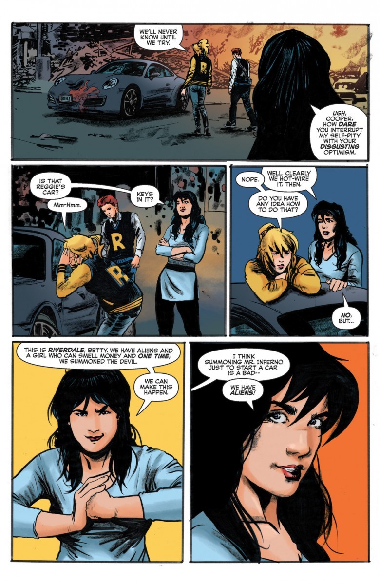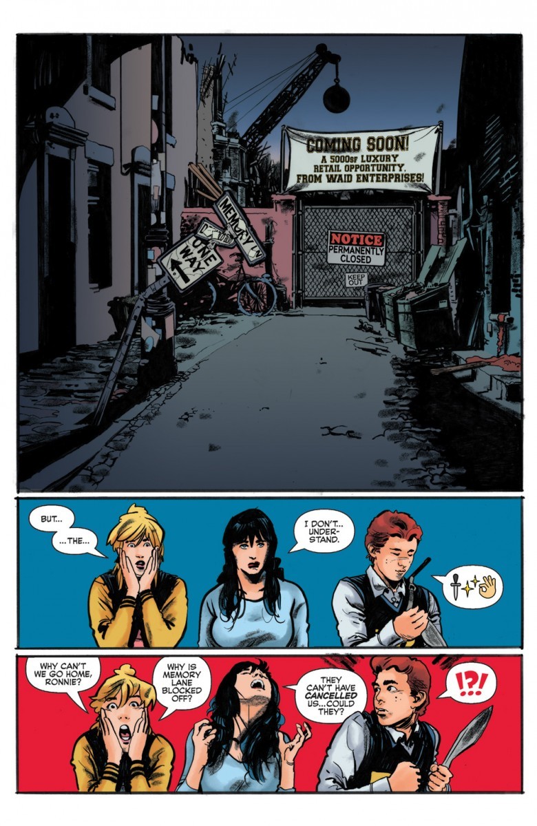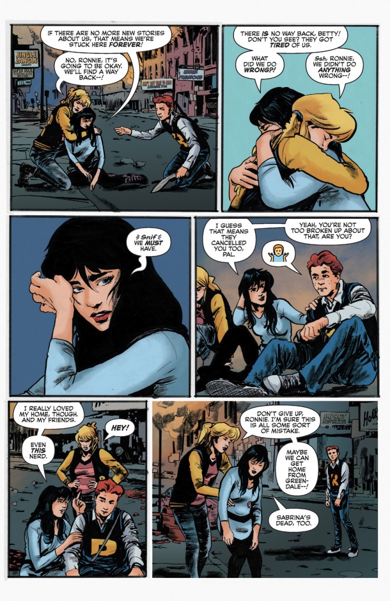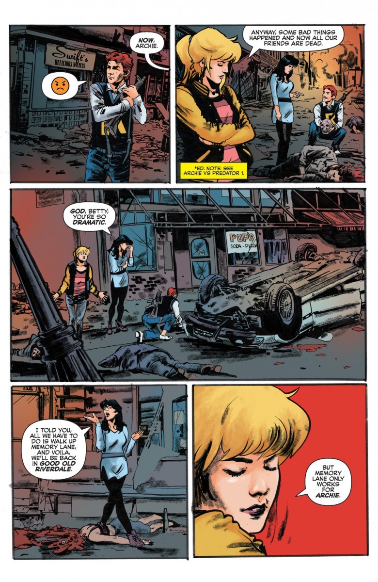 America’s favorite teen meets the galaxy’s fiercest hunter—again! Betty, Veronica and Predator-Archie have been left in the wreckage of their town, all their friends dead. Normally, they’d just go down Memory Lane and get home again where everything’s okay, but that’s no longer an option. It isn’t until they find an undamaged car and drive it down a different road where they can finally return to Riverdale—but their hometown feels different. And it’s made even more bizarre when they come face-to-face with a few people they’d never expect: themselves. Only different, newer versions. Little do they know, Predators on Mars are watching them—planning their next attack!