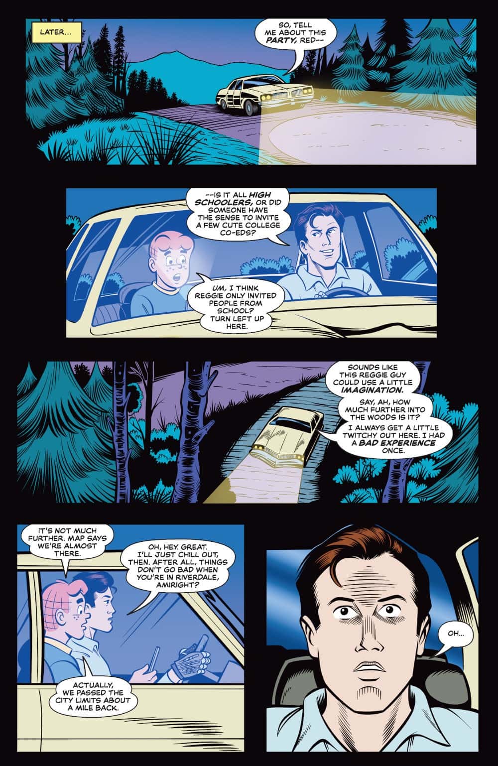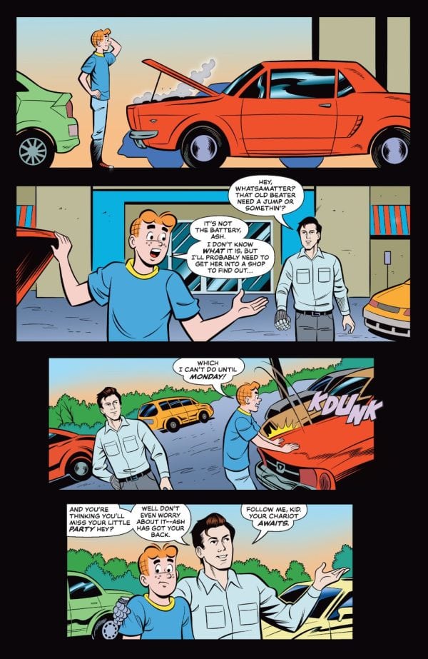 IT’S A DEADITE PARTY! Reggie’s lake house soirée was supposed to be the social event of the season, but now it may prove to be the town of Riverdale’s swan song! Following Archie Andrews’s unwitting awakening of the Army of Darkness, chaos — in the form of an undead horde – has descended upon the shore. With slavering evil literally at their doorstep, the gang has only one hope of making it out alive – the Savior of S-Mart, one Ashley J. Williams. Unluckily for them, the Chosen One’s car currently has four flat tires!