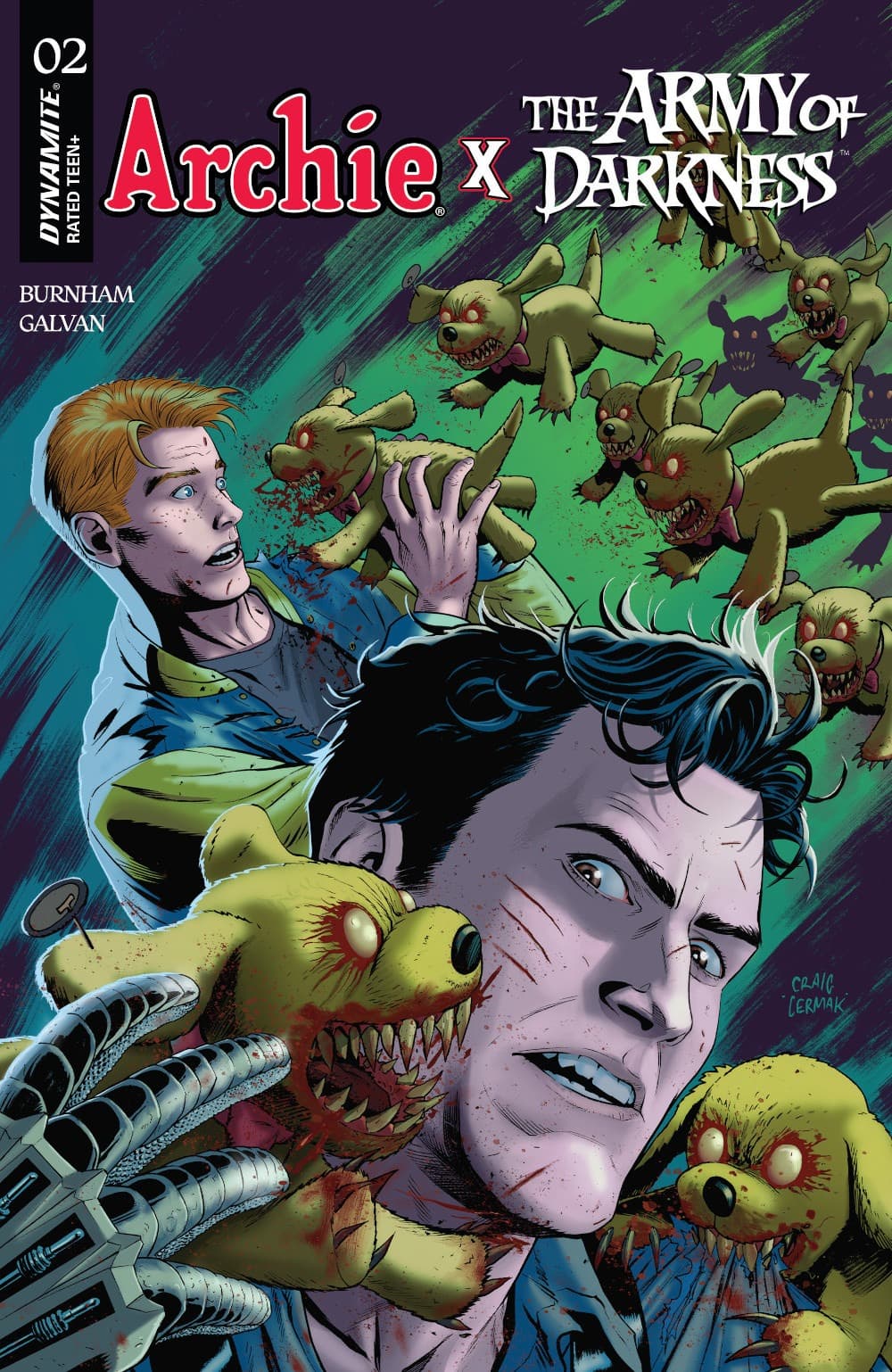 Amateur mechanics Erik Burnham and Bill Galvan pop the hood and supercharge the adventure in Archie X Army of Darkness #2 – featuring nitrous-boosted covers from Bill Galvan, Francesco Francavilla, Laura Braga, Craig Cermak, and Stuart Sayger.