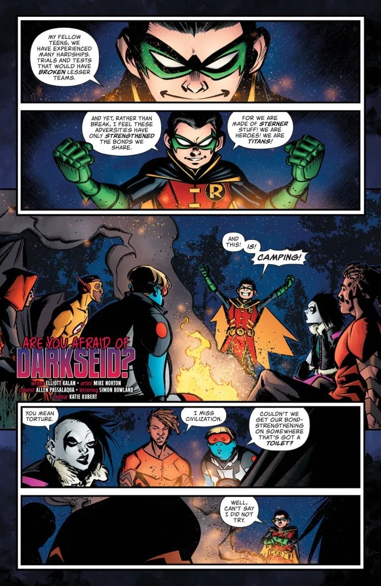 The Teen Titans guide those brave enough through tales of Batman and the hidden killer, Superman and Lois Lane and the killer in their back seat, Harley Quinn and Darkseid versus a furious Bloody Mary, and four more stories so hair-raising you’ll call your momma to come pick you up. So toast your marshmallows, pull up a s’more, and answer the only question that matters this Halloween: Are you afraid of Darkseid?
