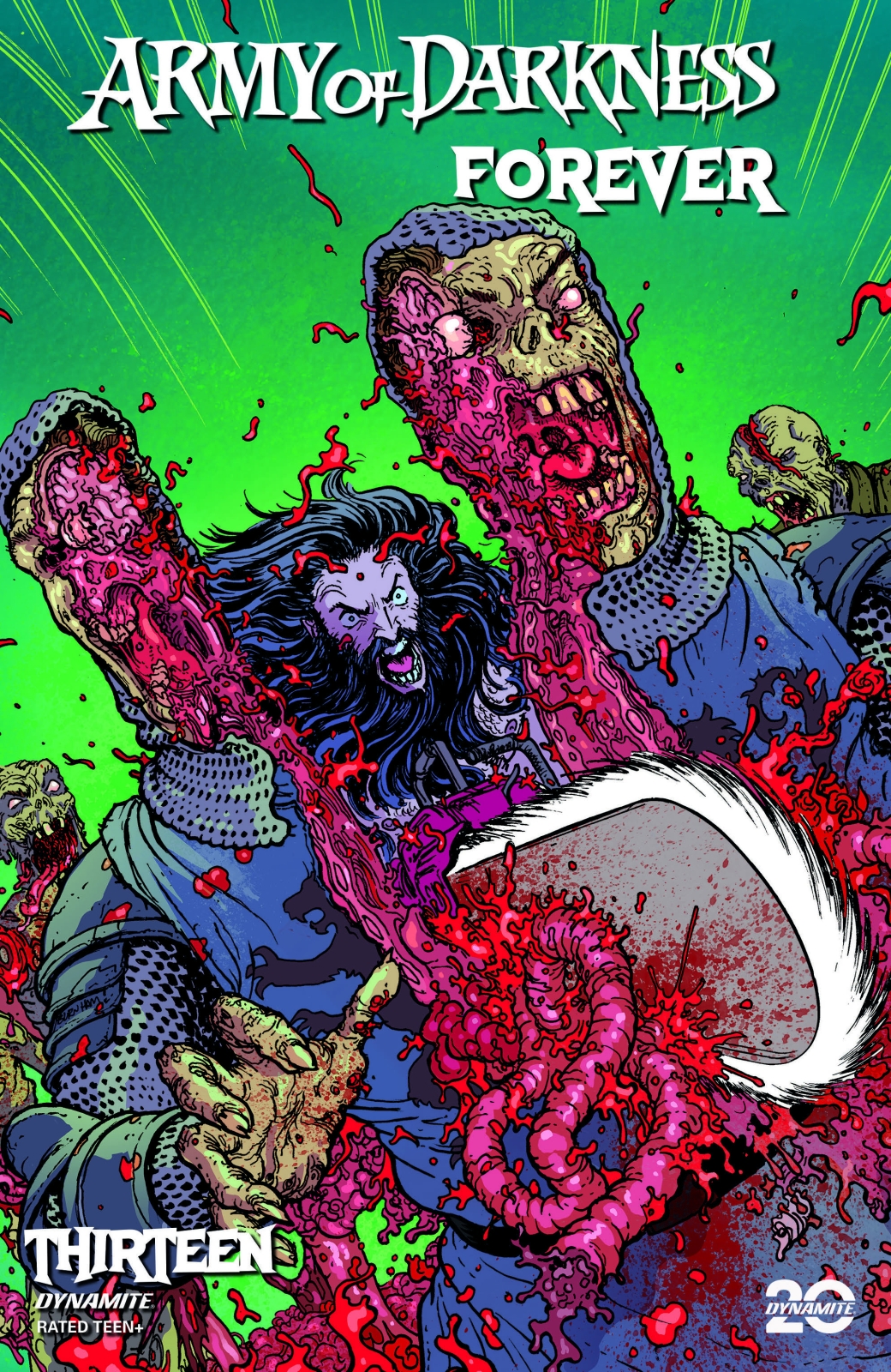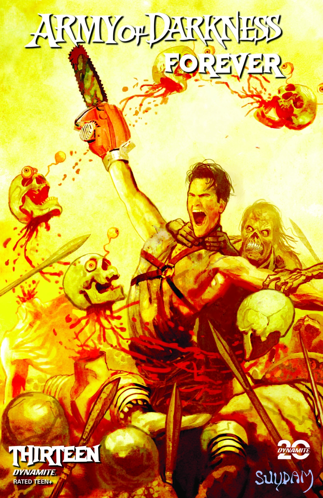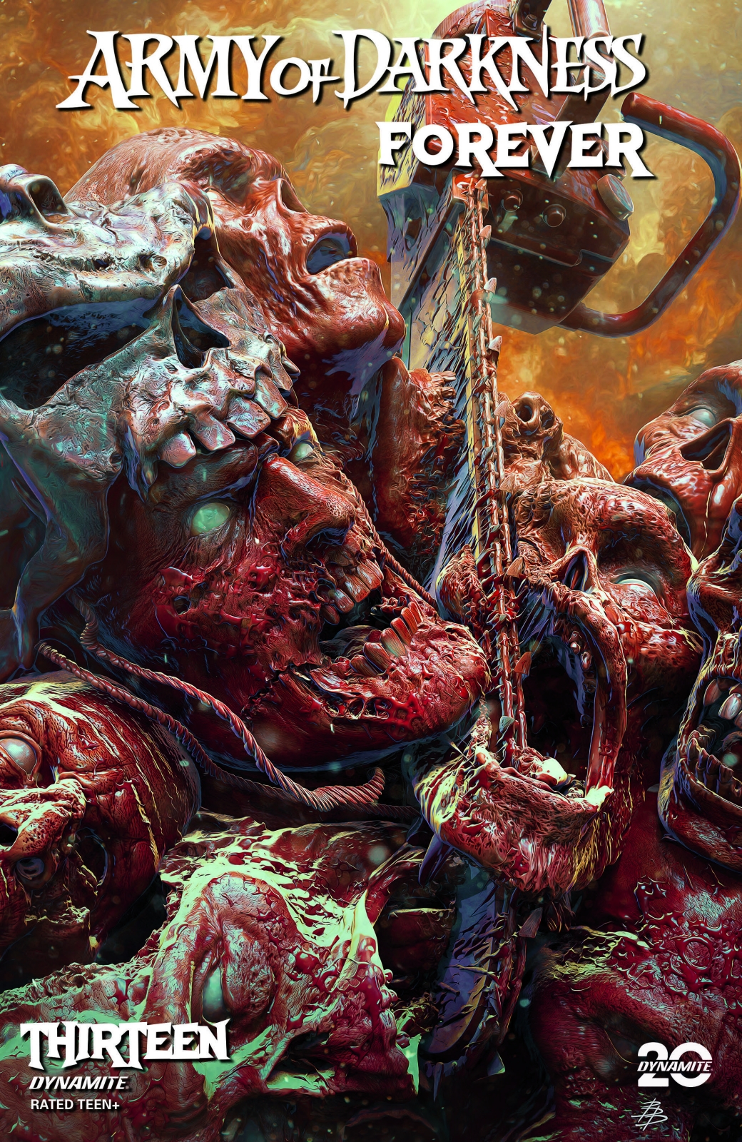 Dynamite is capping off its Army of Darkness anniversary series with an oversized dose of all-out carnage! This issue’s splatter-ific story by TONY FLEECS is so over-the-top that we had to enlist not one, not two, but three incredible artists to chronicle the absolute chaos of its Deadite slaughter!