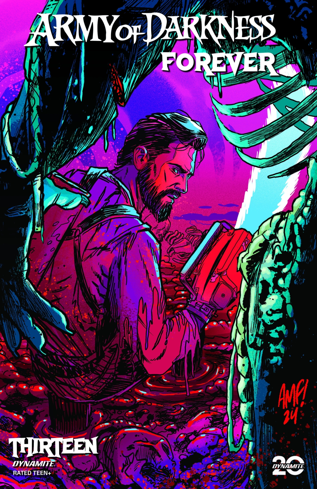 With unhinged interiors by EAMON WINKLE, KEWBER BAAL, and POP MHAN, and crazed covers from series stalwarts ARTHUR SUYDAM, BJORN BARENDS, CHRIS BURNHAM, and TONY FLEECS, Army of Darkness Forever #13 puts the “grand” in grand-guignol — and gives the unstoppable Ash Williams the sendoff that a hero of his caliber deserves!