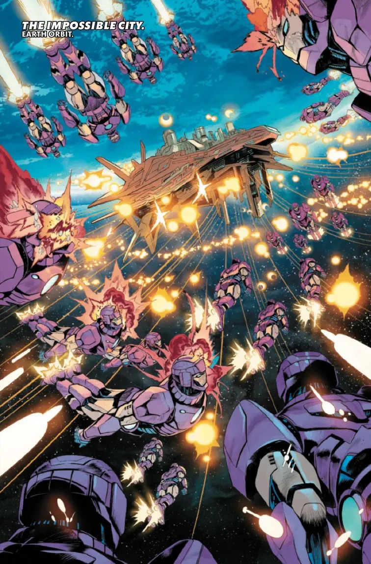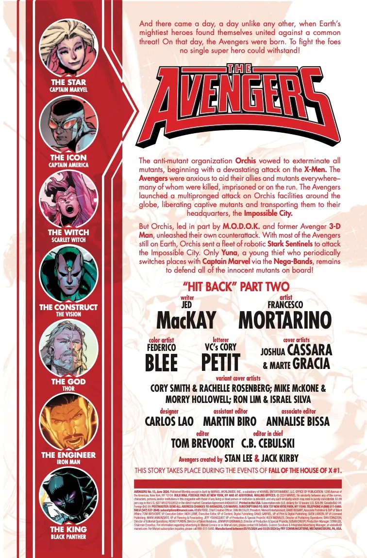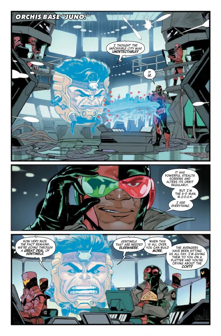 THE AVENGERS VERSUS THE STARK SENTINEL PROGRAM! Orchis’ counterstrike puts the Avengers on the back foot as the true extent of the Stark Sentinel program is revealed. Can Earth’s Mightiest Heroes stand against impossible odds? Or will they fall against the metal onslaught?