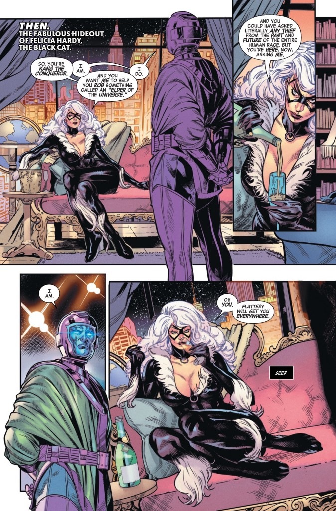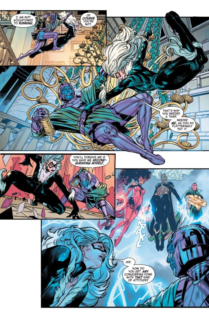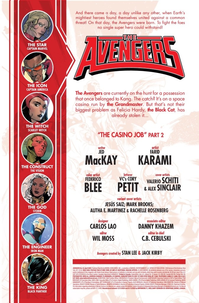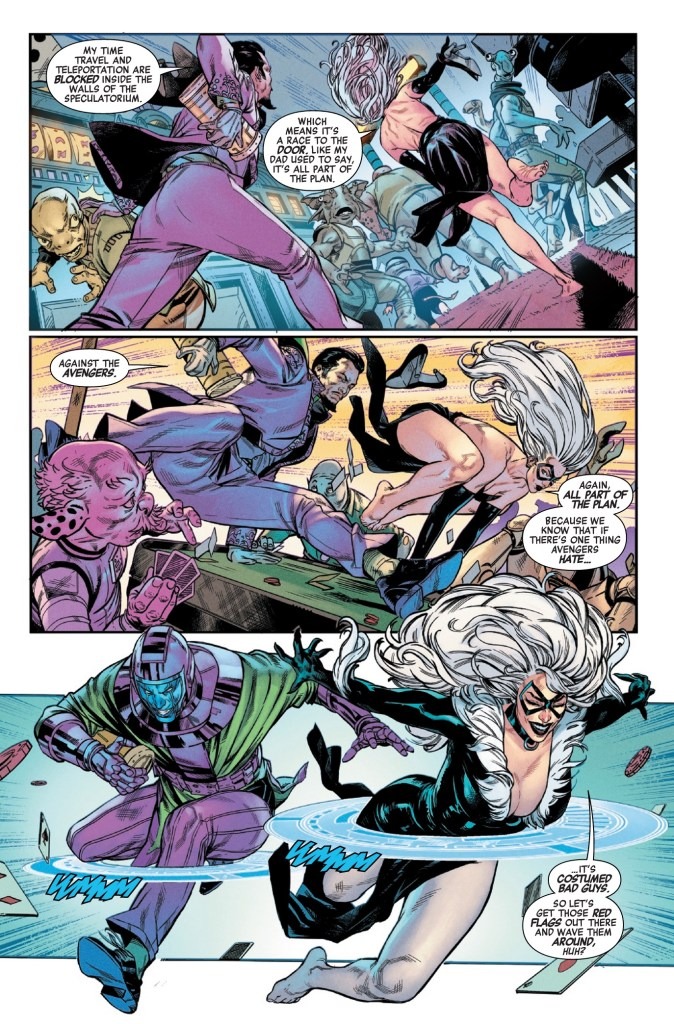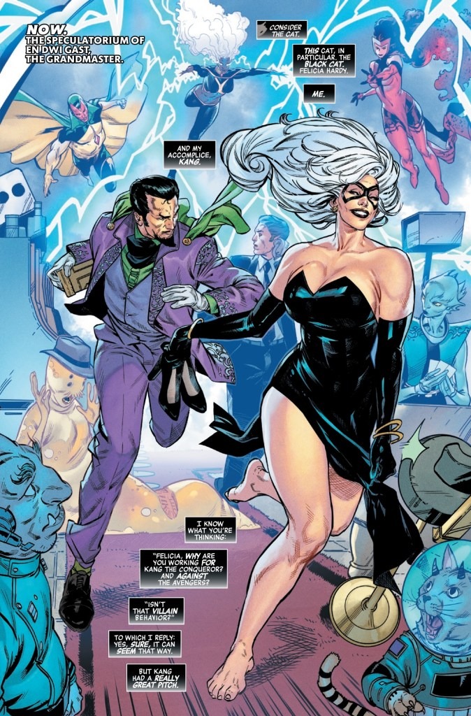 ONCE A THIEF…ALWAYS A THIEF! The Avengers never should have trusted Felicia! Can they stop BLACK CAT from escaping the space casino with Kang’s stolen intel? To do so, they’ll have to get past Black Cat’s newest bodyguards…Avengers, get ready for your first clash with GATECRASHER & THE TECHNET!