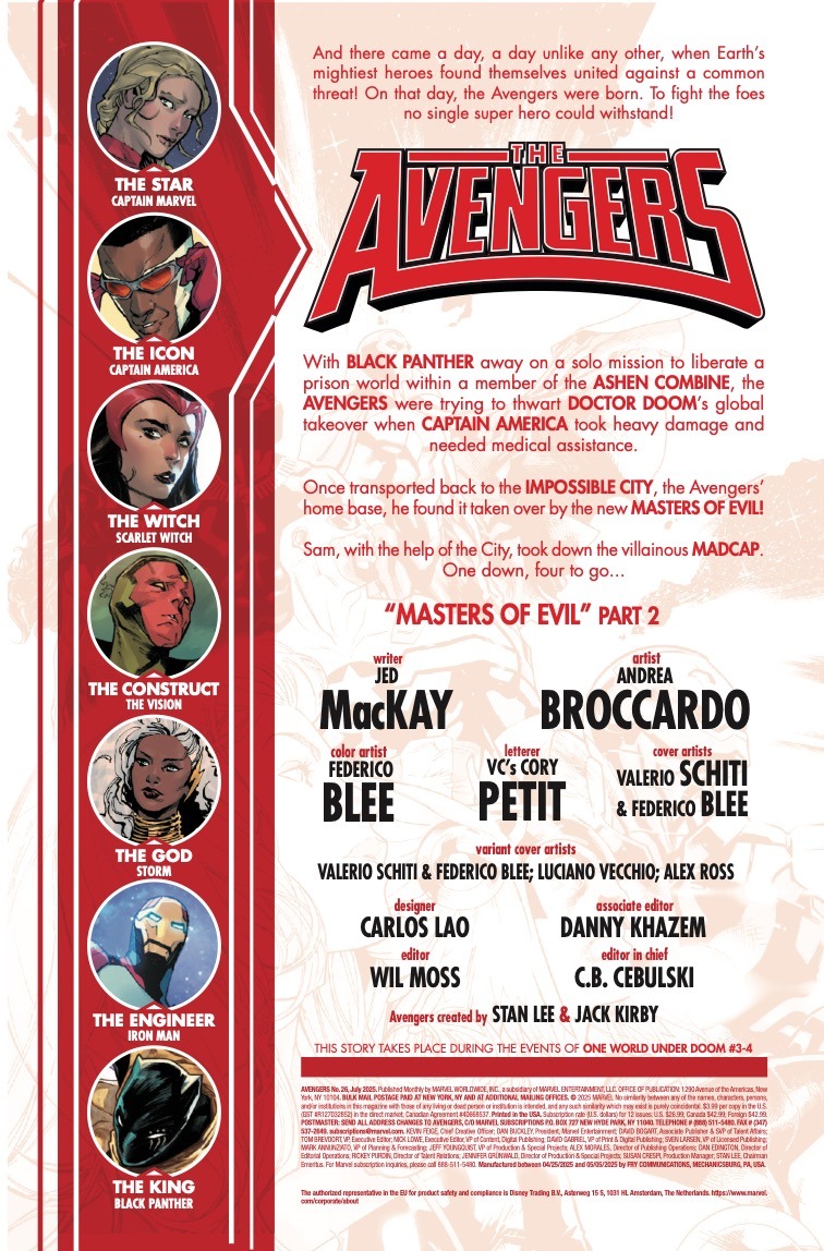 THE MASTERS OF EVIL RULE! The Impossible City, current home base of the Avengers, has been commandeered by the MASTERS OF EVIL! Who is left to defend the world while DOOM is in power? And how are the Avengers able to fight a war on multiple sides?