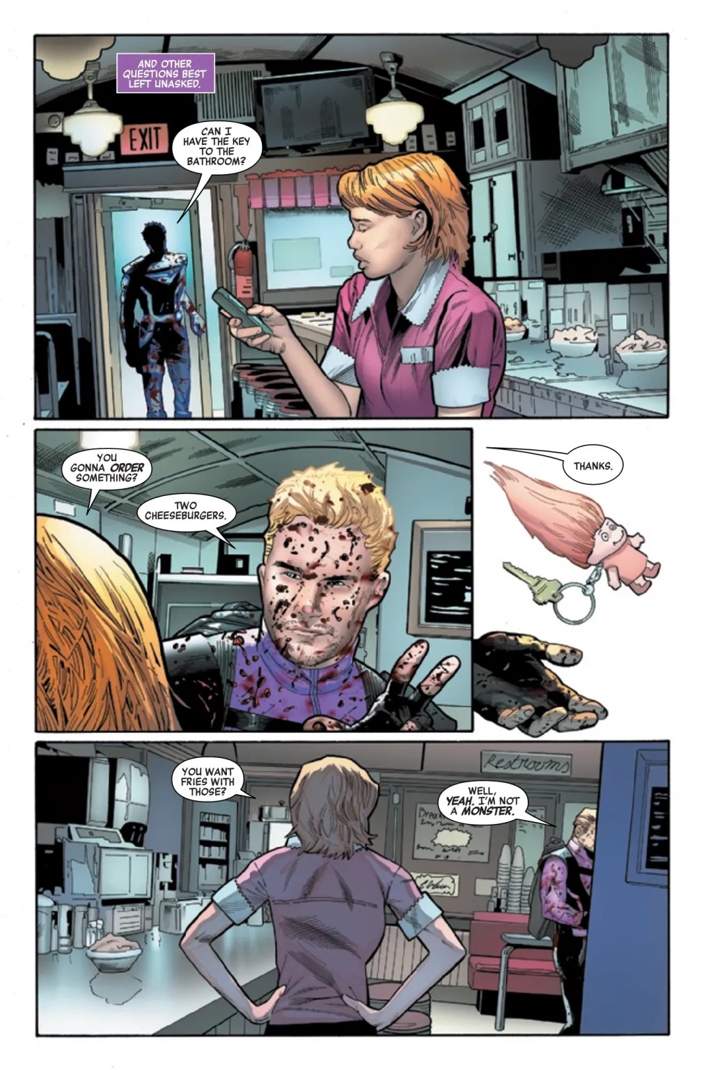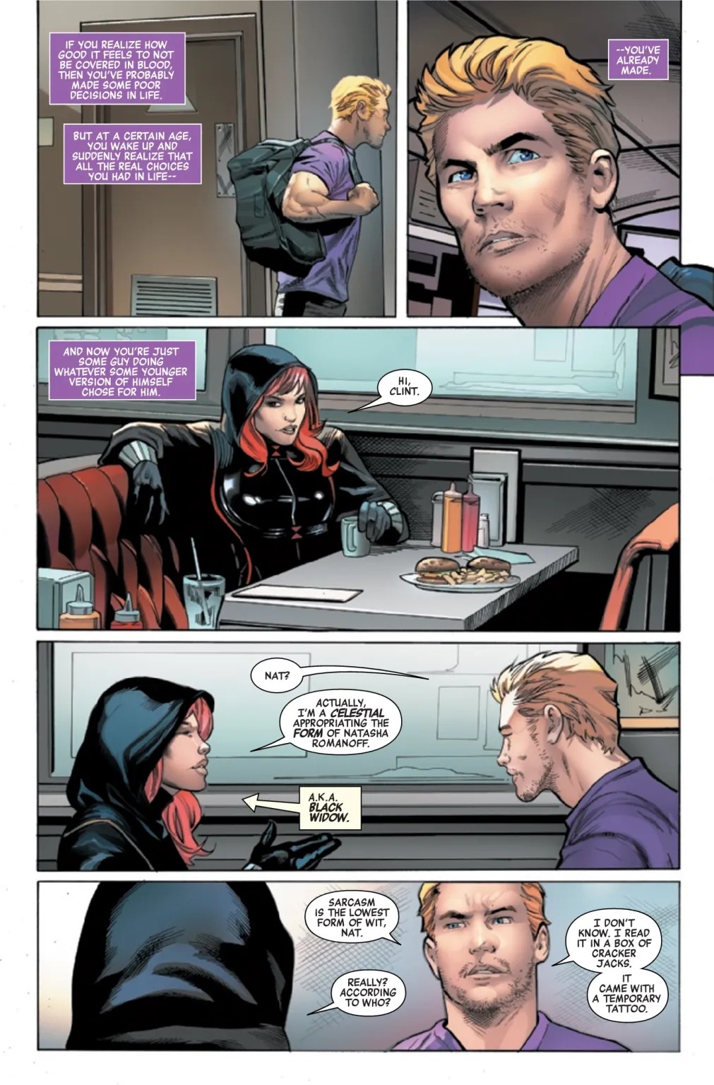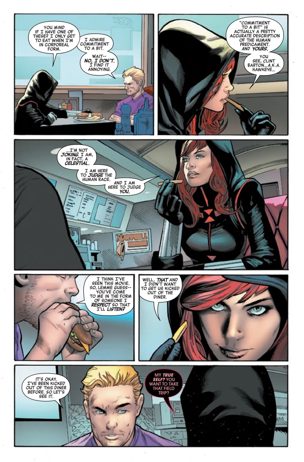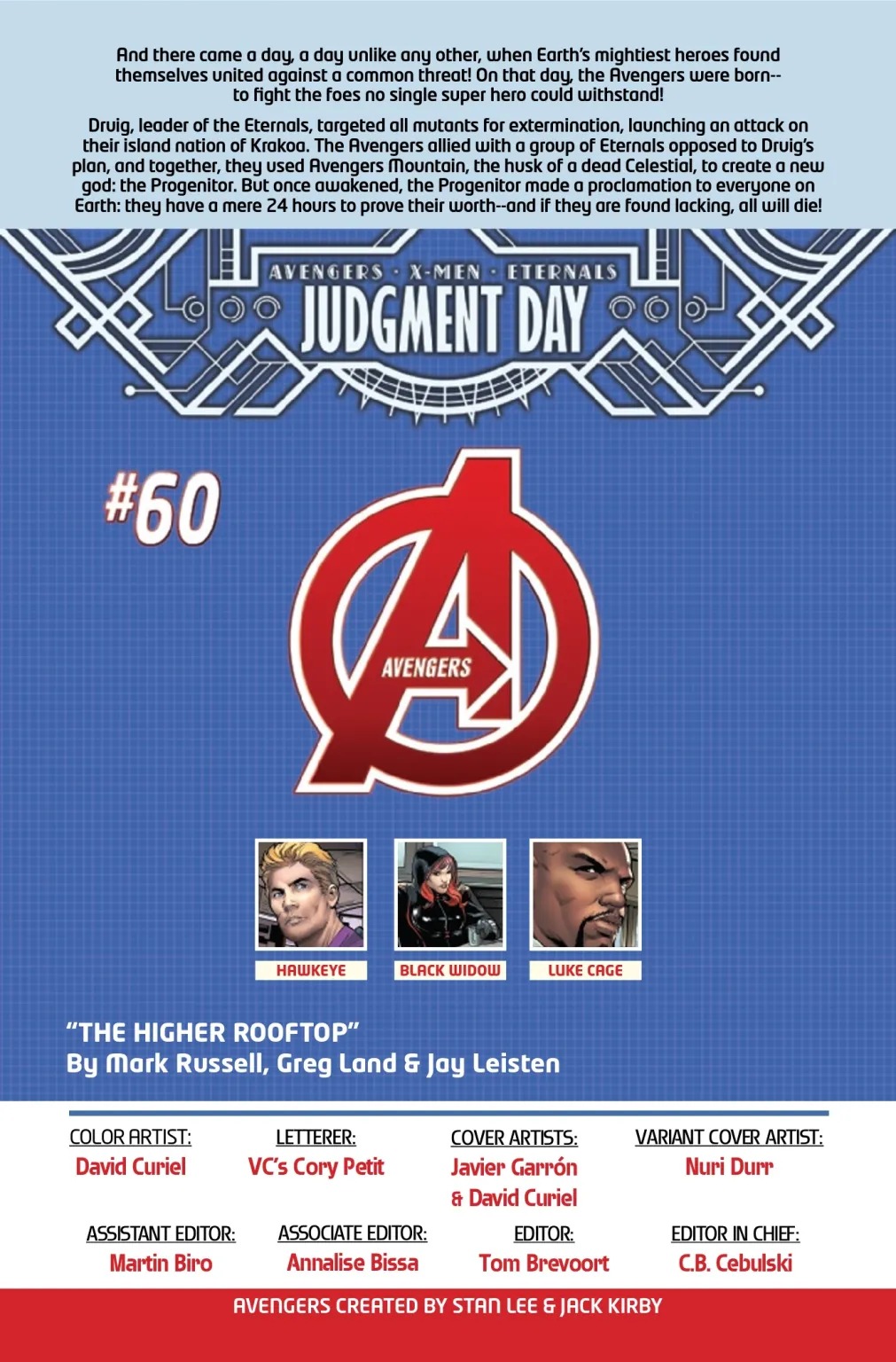 A.X.E.: JUDGMENT DAY TIE-IN! The Avengers’ ace archer is back! As Judgment Day looms, Hawkeye is called upon to justify his existence. As a benchmark, Hawkeye must prove that he brings at least as much joy and usefulness to the world as a randomly chosen mailbox, which, admittedly, is a pretty high bar.