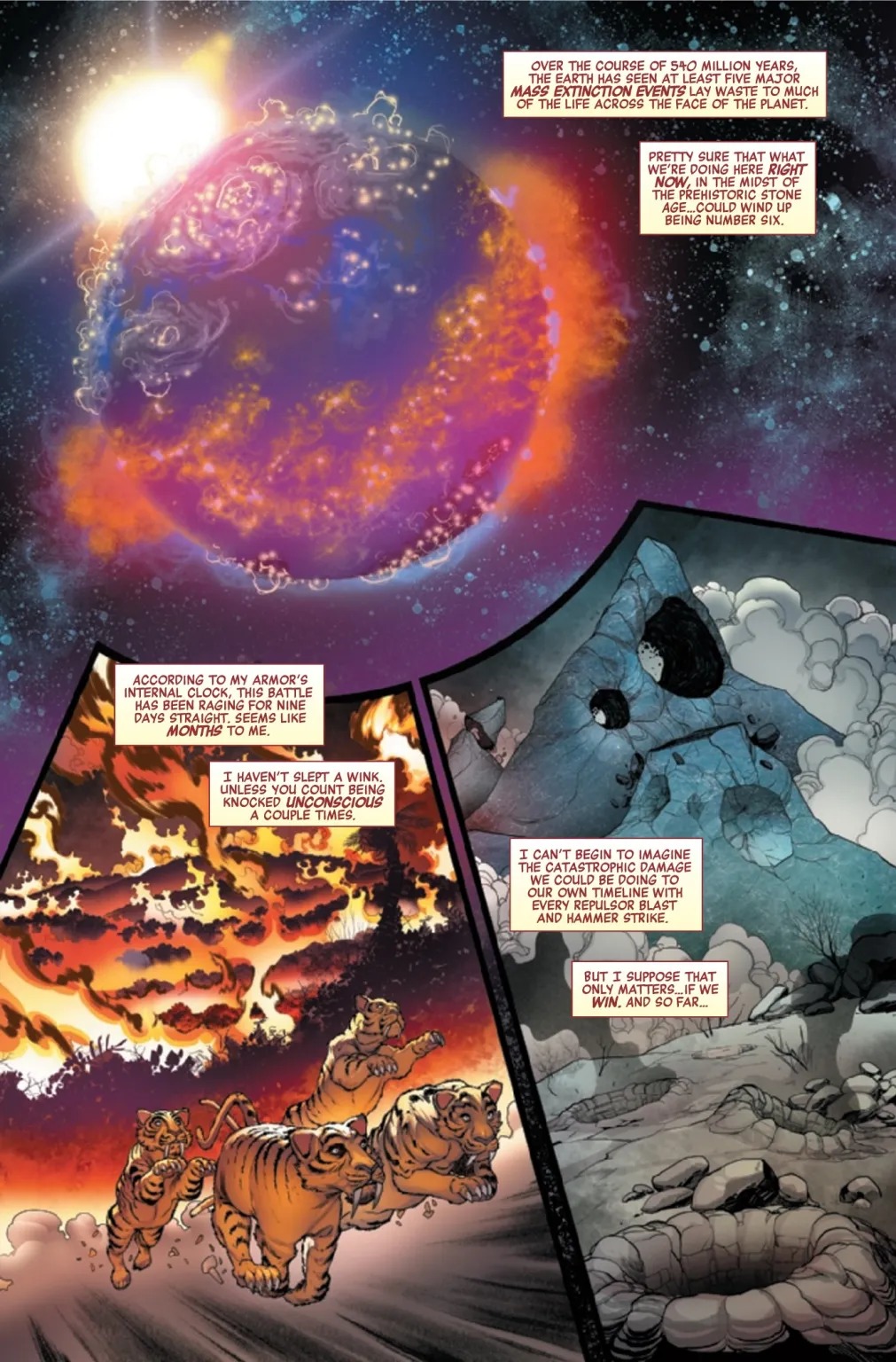 The Avengers wage their final bloody showdown with the Multiversal Masters of Evil for the fate of prehistoric Earth and the entire Marvel Age of Heroes. Not everyone will survive. Meanwhile, Tony Stark must face his greatest enemy: his own father, the Iron Inquisitor.