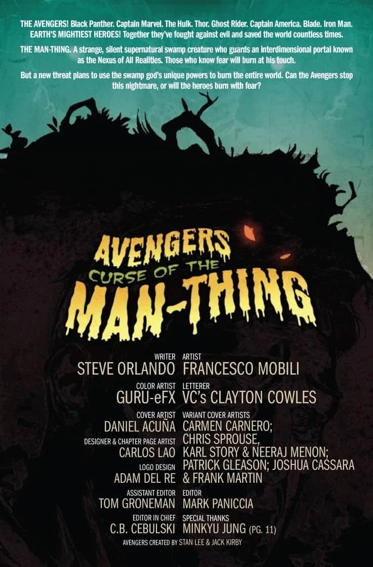 Avengers: Curse of the Man-Thing #1 goes on sale on March 31st, priced $4.99.