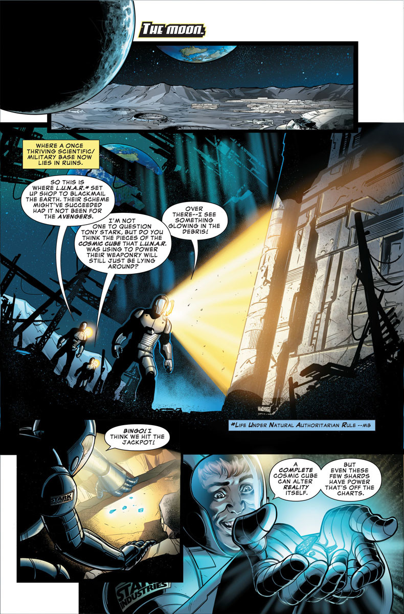 • From the wreckage of their moon base, the villainous LUNAR rises again — with a deadly plan for the shards of the COSMIC CUBE! Join CAPTAIN AMERICA, BLACK WIDOW, IRON MAN and CAPTAIN MARVEL in a race against time that will determine the fate of the solar system!