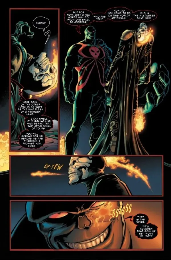 “VENGEANCE IN THE WASTELAND! On an alternate Earth ravaged by the multiversal Masters of Evil, Ghost Rider Robbie Reyes has been taken prisoner by the planet’s dark wastelords, the brutal War Machines. And what the Rider endures at their hands will change him forever—into the most unbridled force for vengeance any universe has ever seen. That’s unless Ant-Man, Tony Stark and his bunch of ragtag heroes can pull off the mother of all rescues.”