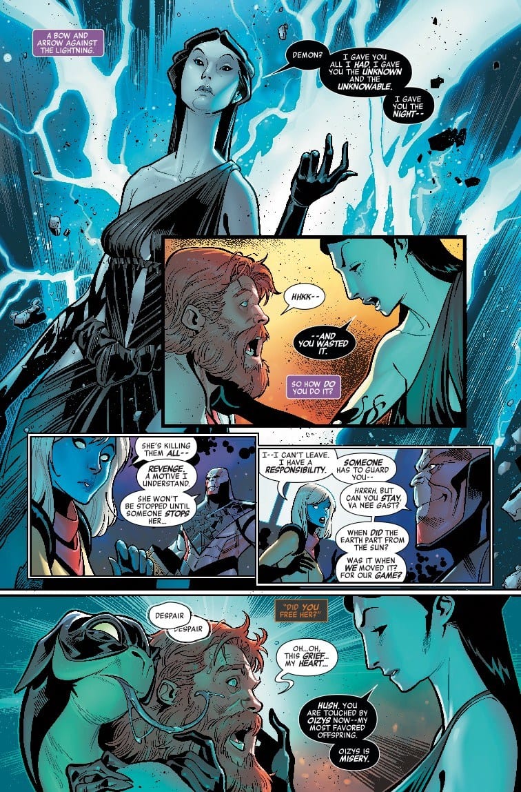 Nyx, the Queen of Night, battles the Avengers over the bodies of her victims – and Hawkeye pays the price of defiance!