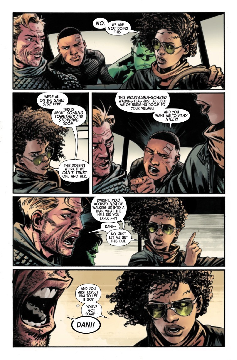 HUNTING FOR DOOM! DANI/THOR, DWIGHT/ANT-MAN, and HULK, JR. set off on a quest to save the Wastelands from DR. DOOM’s reign of terror! But can they succeed where OLD MAN LOGAN left off? And what does the return of CAPTAIN AMERICA herald for the team?