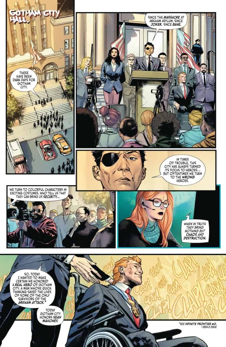 Batman goes undercover to infiltrate the transhumanist gang known as the Unsanity Collective and learn more about their sudden appearance in Gotham. And what nefarious plans does Simon Saint have for Arkham Day survivor Sean Mahoney? How does it connect to the Magistrate?