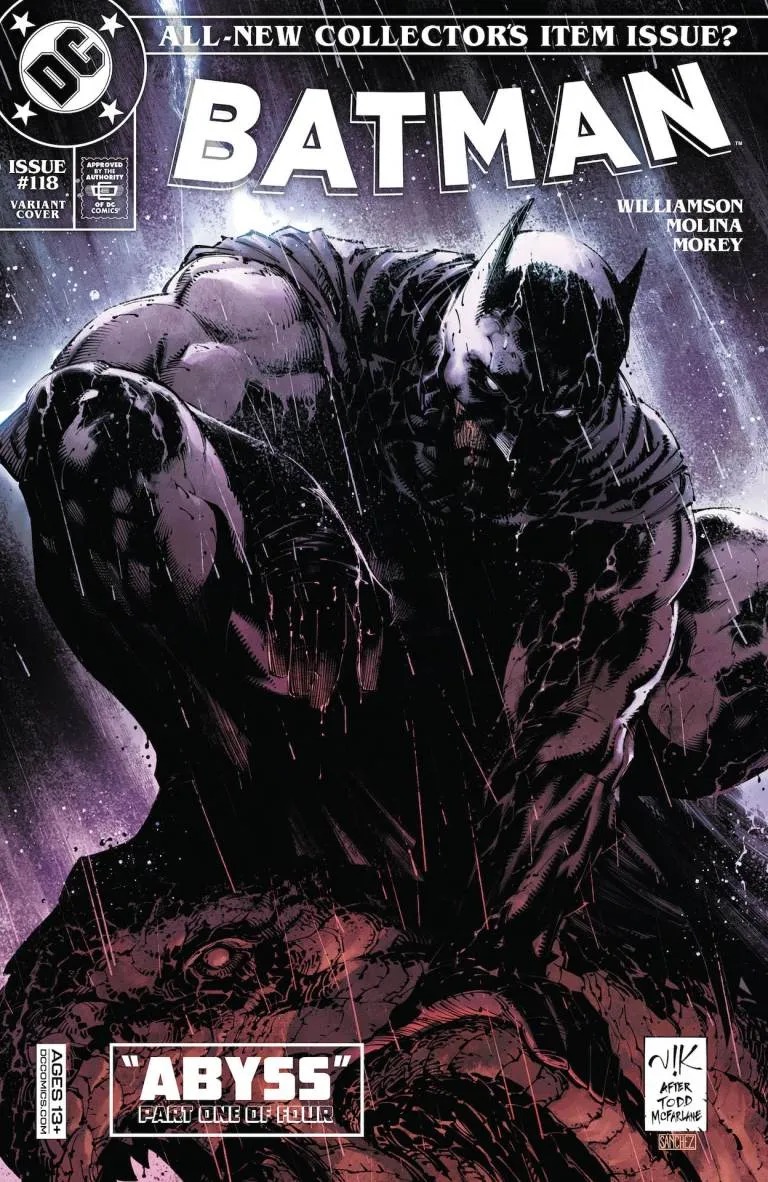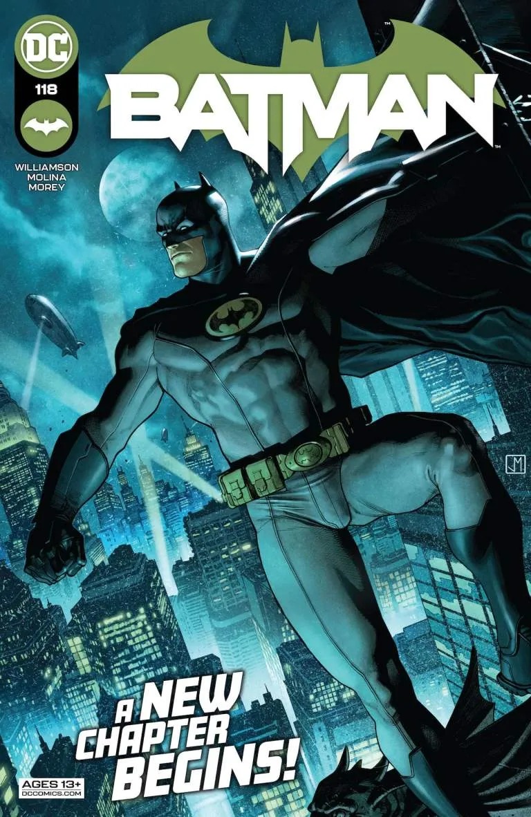 The Dark Knight begins a new story with superstar artist Jorge Molina and new writer Joshua Williamson!” New creative team! Start of a new story arc as Batman leaves Gotham!