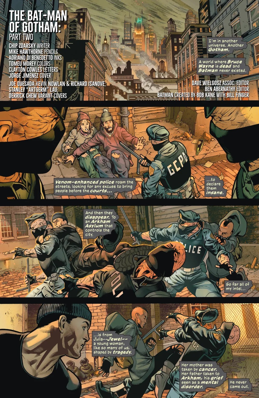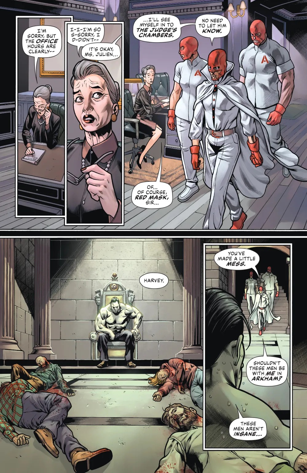 The mean streets of Gotham City have gotten meaner as the likes of Harvey Dent and Killer Croc roam free, brutalizing the population. Where is Batman and why hasn’t he responded to the cries of a city in peril?! Can Bruce Wayne find the answers before the mysterious Red Mask captures him? And in the backup story, Tim Drake’s hunt for Batman continues. Will Metropolis’s newest Superman, Jon Kent, be able to help the Boy Wonder with this Multiversal mystery, or will they both run afoul of an overpowered Toyman?!