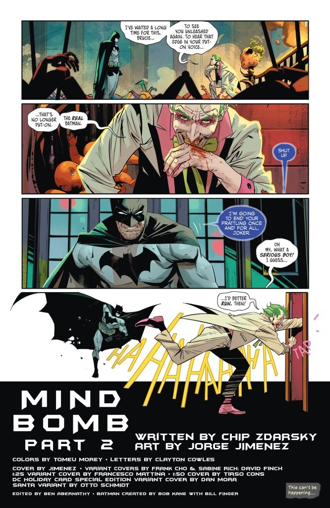 It’s Batman versus The Joker in their most brutal fight of all time. But wait…Batman is also battling a legion of himself! What has Zur done? And who will walk away? The brutal “Mindbomb” continues!