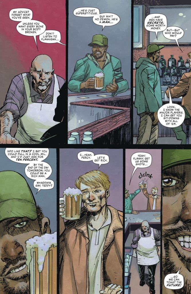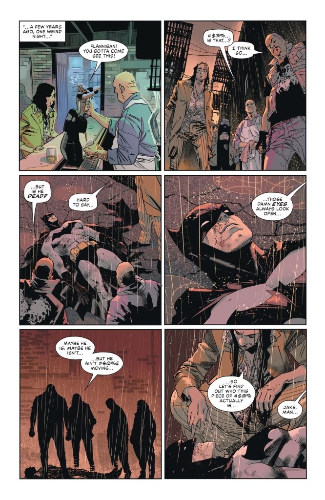 A milestone issue featuring art by the legendary DENYS COWAN (The Question) and series regular JORGE JIMÉNEZ! When a two-bit crook uncovers Batman’s true identity, he becomes the most dangerous man in Gotham City! Can Batman stop him before it’s too late? Does he even want to? Plus, an Absolute Power backup story by Chip Zdarsky and Mike Hawthorne teaming Batman and Catwoman on the heist of their lives against Amanda Waller!