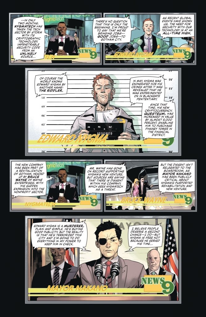 Batman is back with a vengeance and Bruce Wayne’s new public initiatives have Gotham on the verge of finally becoming a great city! Does that bright future include the Riddler, who’s seemingly gone legit? Or the new, unnerving hero, Commander Star? And can Gotham survive the shocking murder of one of its greatest citizens? The Dying City starts here with a case that only Batman can solve, but the answers may unravel his world and all of Gotham!