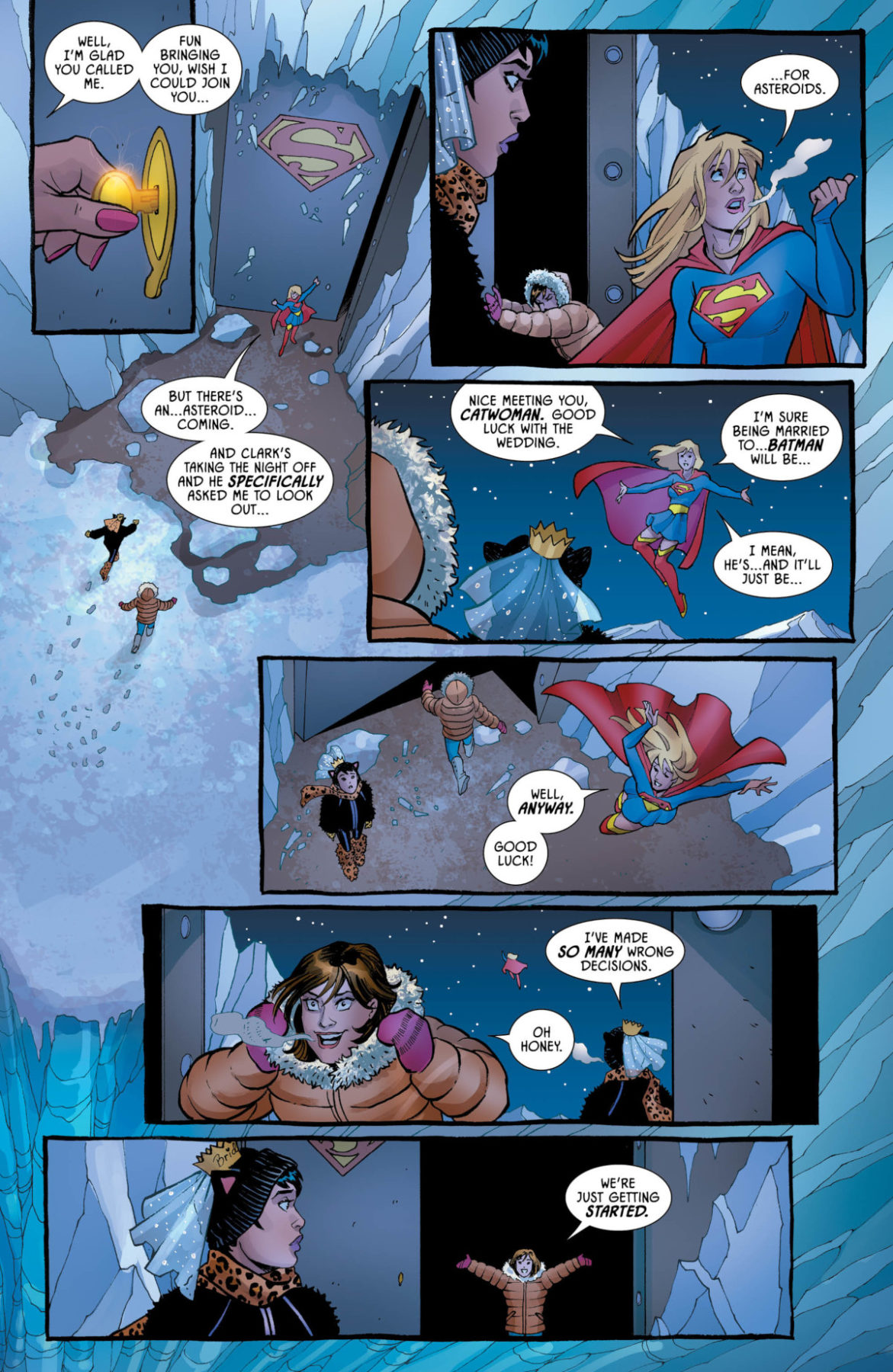 Batman is making his way to the end of his Knightmares, but his unseen enemy has a few more tricks up his sleeve. It’s time once again to stick a knife into the Caped Crusader’s broken heart, letting the groom-that-could-have-been peer in on the bachelorette (or should that be “Catchelorette”?) party that never was. Artist Amanda Conner (Harley Quinn) rejoins the Bat-family for this month’s special story—because who else you gonna invite to a shindig like this?