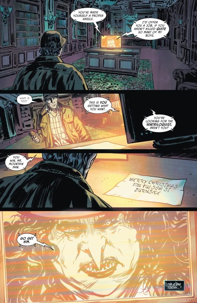 THE QUIET MAN CLOSES IN! The Quiet Man’s murderous rampage across Gotham’s underworld zeroes in on his true target — Arnold Wesker, the Ventriloquist. Can the Dynamic Duo stop this unstoppable new foe before he fulfills his savage vendetta?
