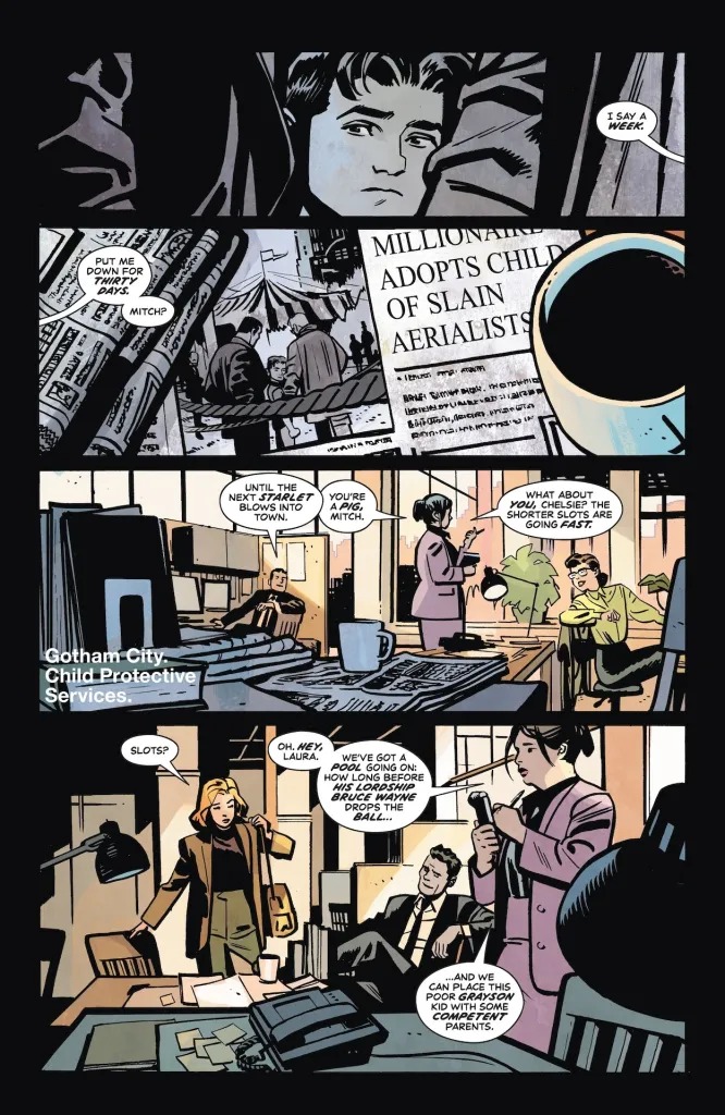 Dick Grayson is struggling to adjust to his new life as Bruce Wayne’s ward, with both Bruce’s rules and Batman’s training making his life difficult. But Dick is happy to remind Bruce that turnabout is fair play. Gotham’s newest crime boss, the General, continues to vie with Two-Face for control — but could an alliance benefit both of them and spell trouble for Batman and Robin?