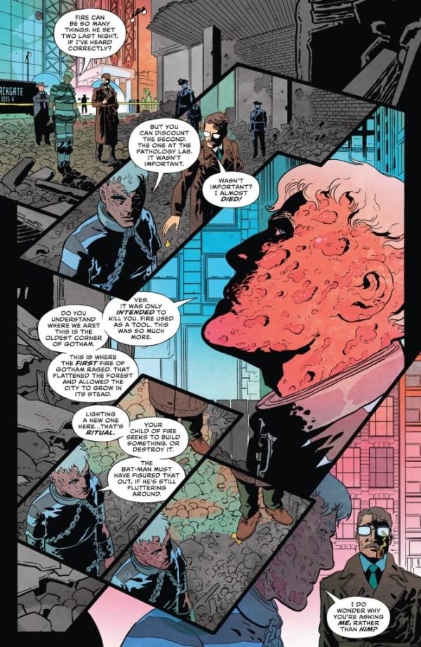 With the mystery of the terrifying new arsonist’s identity hanging over his head, Batman finds himself at a crossroads with one of his allies. Is it possible they’re the mastermind behind the flames devouring Gotham City?