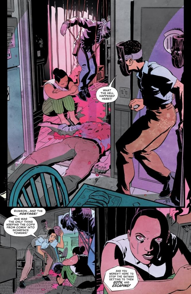 I HAVE NO TONGUE, AND I MUST SCREAM! CASE 02: The Voice of the Tower–Part III The fires of unrest burn bright and terribly! With Scarface still evading capture and the violent riot in the tower getting even worse with no end in sight, Batman must turn toward a most unlikely ally in his time of need. Will the Dark Knight heal this terrible wound, or will Gotham descend further into chaos?