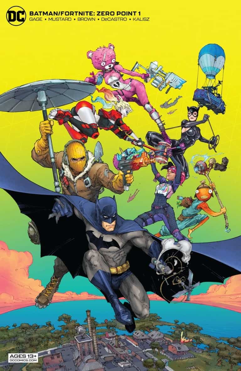 A crack splits the sky above Gotham City…a tear in reality itself. This rift pulls the Dark Knight into a bizarre and unfamiliar world, with no memory of who he is or where he came from…Batman has been drawn into Fortnite! As our hero fights to recall his past and escape an endless loop of chaos and struggle, he’ll come face to face with the likes of Renegade Raider, Fishstick, Bandolier, and more. While the World’s Greatest Detective strives to make sense of this strange new world, he’ll uncover the shocking truth about the Island, what lies beyond the Loop, and how everything is connected to the mysterious Zero Point. Uncover secrets never before revealed in the game or anywhere else! Every fan of Batman, Fortnite, stunning art , and edge-of-your-seat excitement won’t want to miss the Caped Crusader facing off against Fortnite champions on the Island in a desperate attempt to save not only himself, but other familiar faces from the DCU…and perhaps the Multiverse itself!
