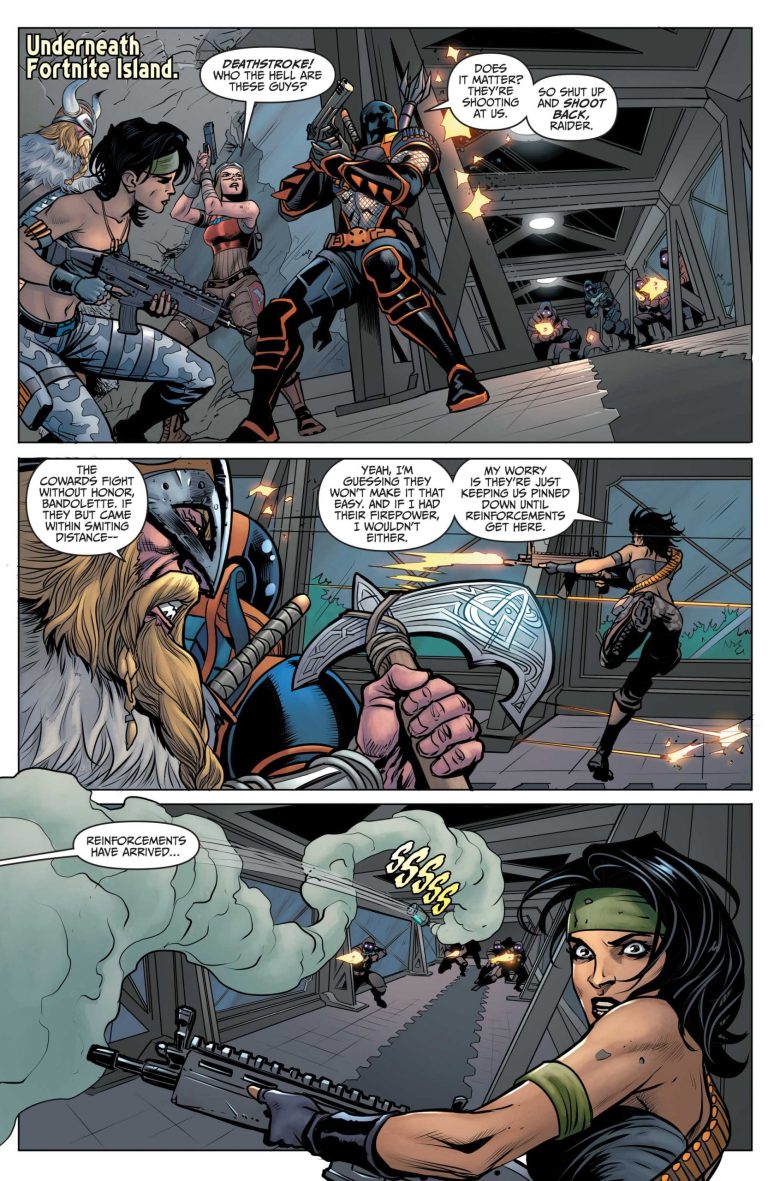 Batman, Catwoman, and the unlikely band of renegade Fortnite fighters make their way deep into the underground complex of the Island in a desperate hunt to escape the Loop-areas never before seen in the game, with secrets discovered only by the World’s Greatest Detective. Along the way they’ll fight for their lives…uncover revelations about the history and inner workings of the world of Fortnite…and face a betrayal from one of their own as our story hurtles toward its explosive conclusion!