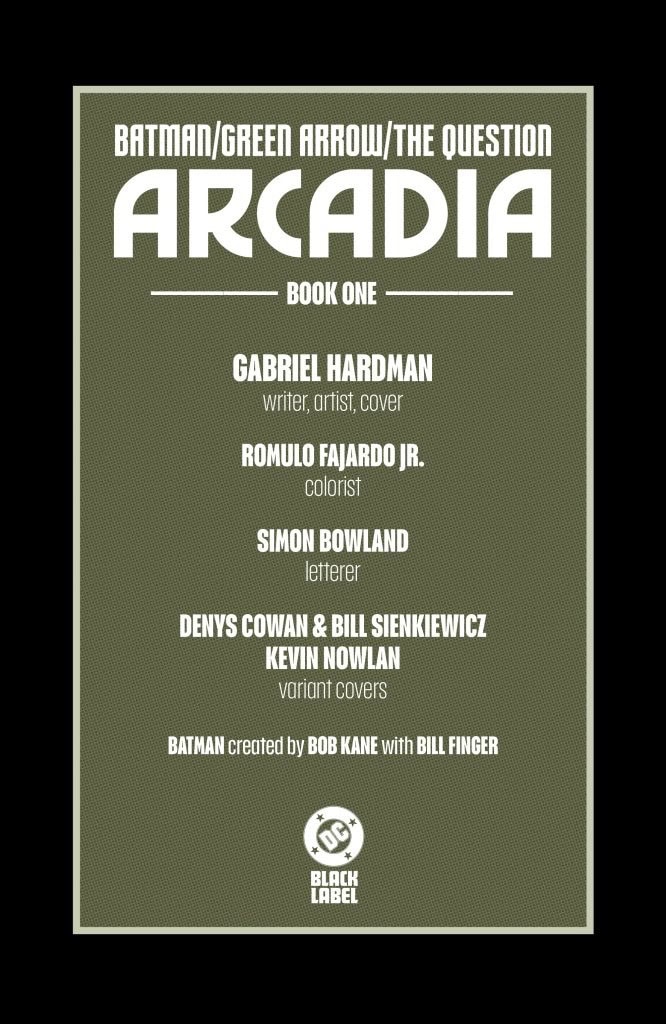 DC launches its new Black Label series Batman/Green Arrow/The Question: Arcadia this coming Wednesday, and you can check out the official preview of the first issue below…