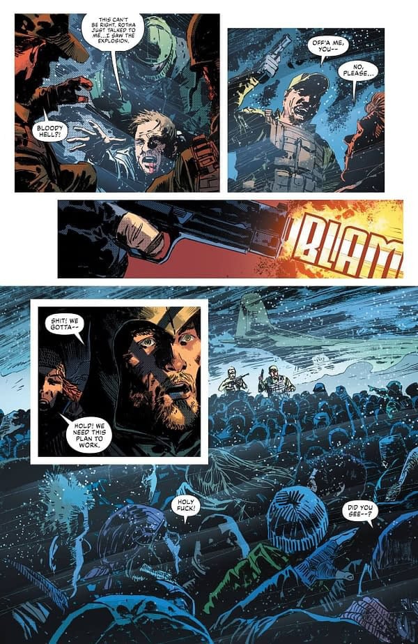 A bold rescue operation reunites Batman, Green Arrow, and the Question… only to crash and burn in the storm-ravaged mountains of Greenland. But the heroes’ tenuous coalition is ripped apart at the seams as they brace for the retaliatory assault of a billionaire’s private army!