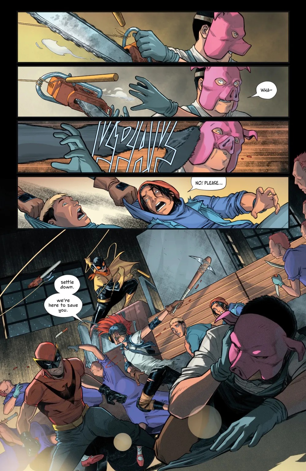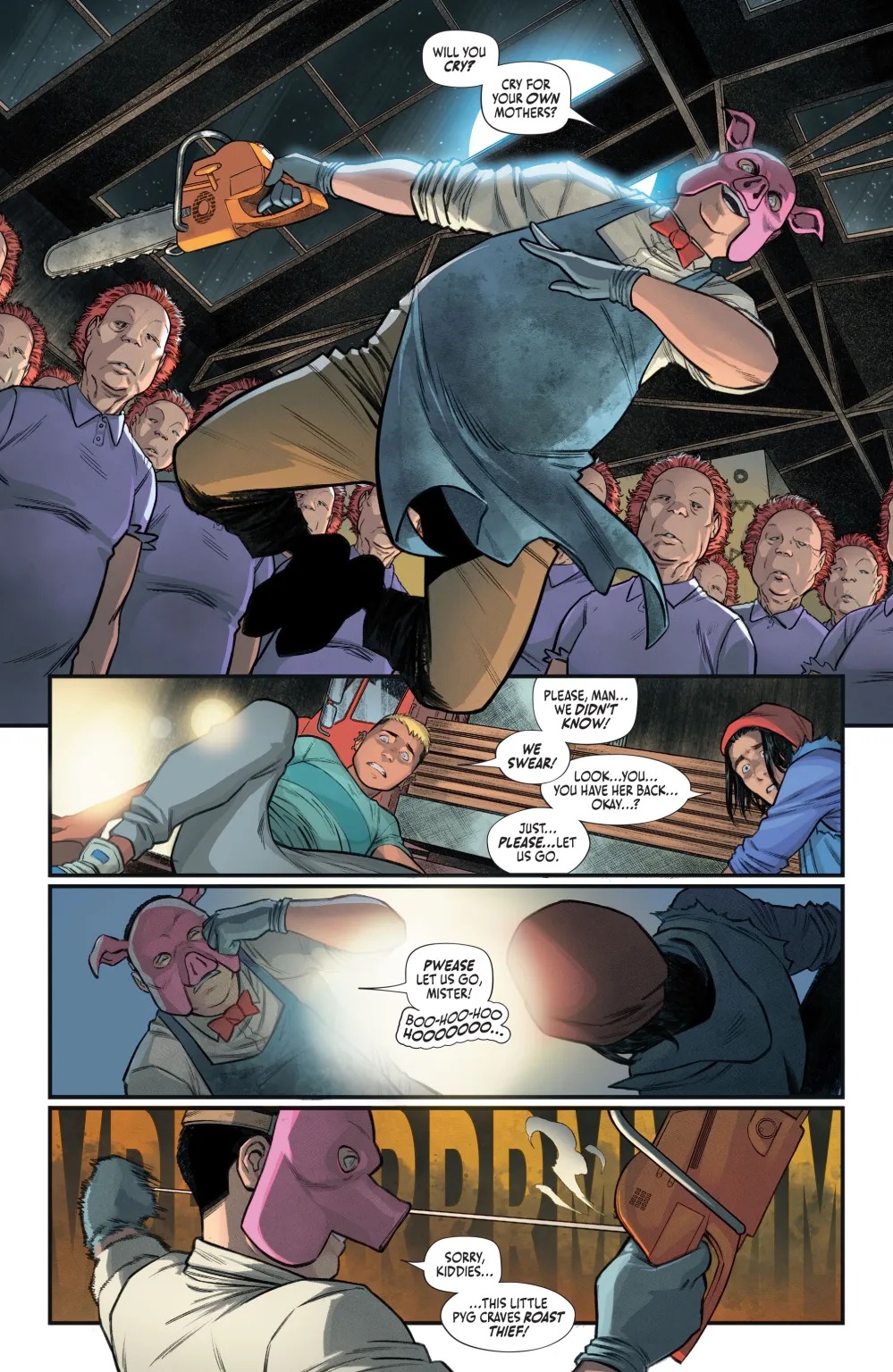 No one is safe as Professor Pyg continues his warpath across Gotham. Meanwhile, Ghost-Maker has the worst Gotham has to offer in his grasp and must decide whether to keep his promise to Bruce or end their reign of terror—for good. Can Batman Inc. find Pyg in time to save the city? Will Ghost-Maker fall back into his old ways? Guest-starring Nightwing, Batgirl, Robin, and more of Gotham’s finest. And as if that weren’t enough—the road to Joker Inc. begins here!