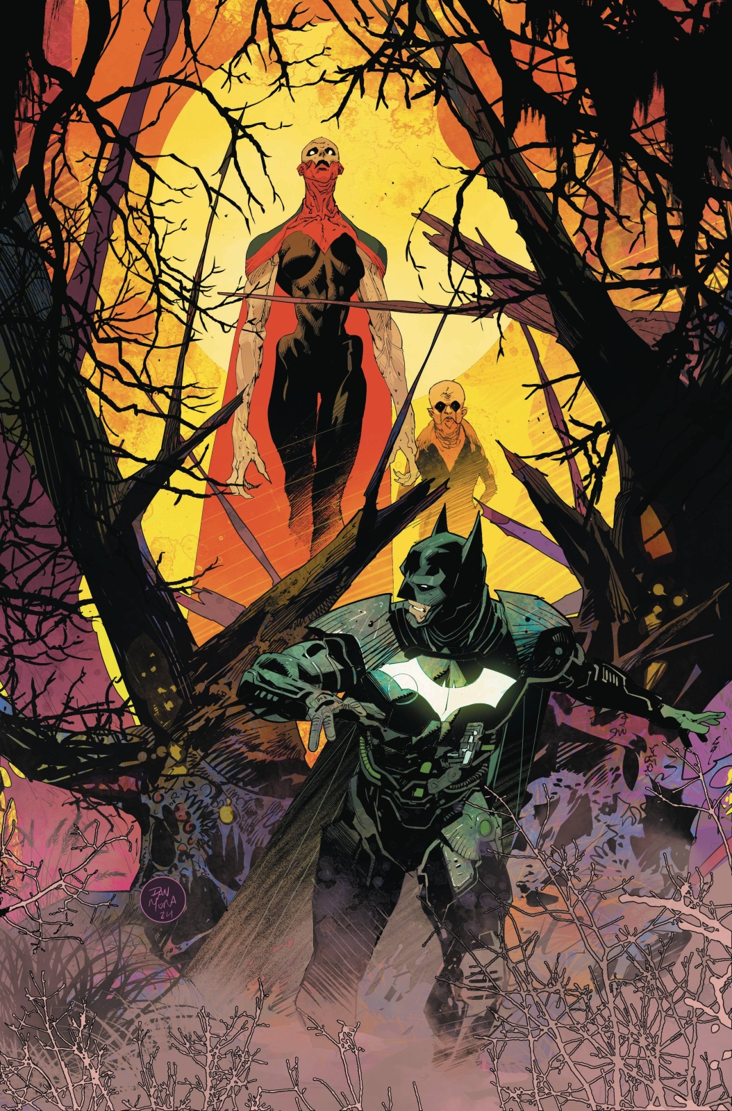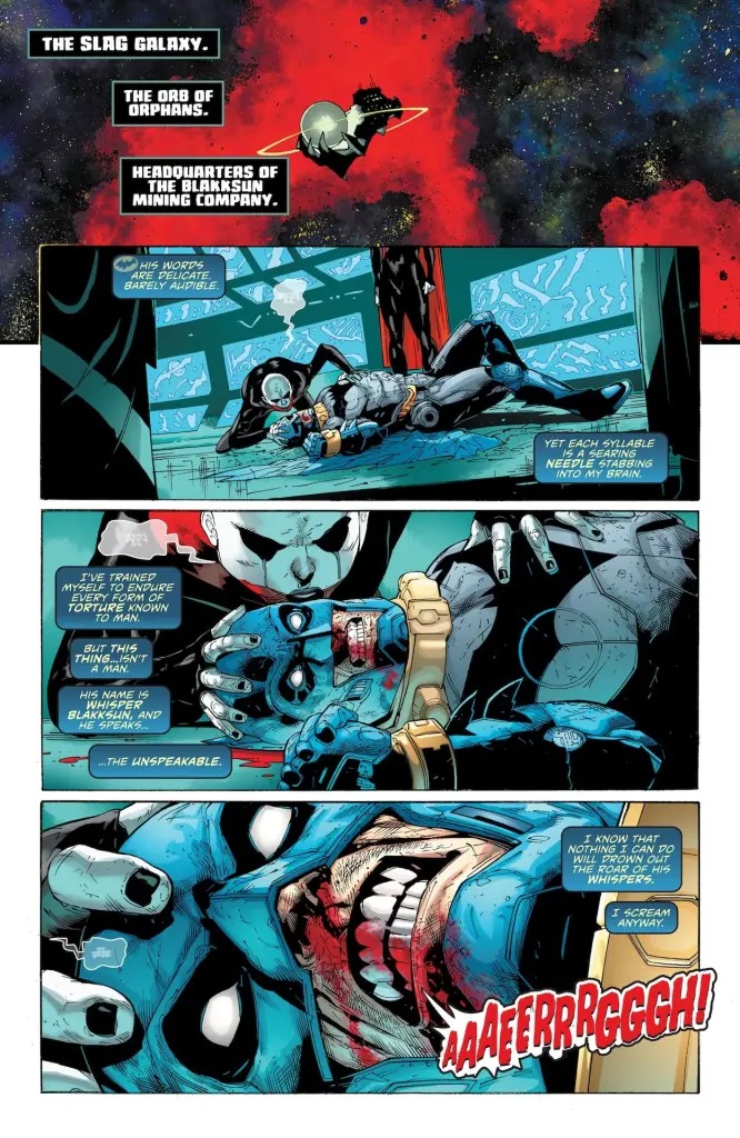 THE CAN’T-MISS FINALE OF BATMAN: OFF-WORLD! Batman is ready to return to Gotham City to apply all that he’s learned from his unbelievable adventure in the farthest reaches of the cosmos — but unfortunately, the Blakksun Twins still have one last lesson for him… a lesson in exploring the final frontiers of pain! It’s the brutal, surprising finale to Jason Aaron and Doug Mahnke’s Batman epic!