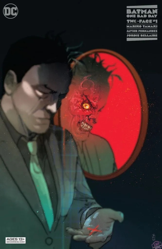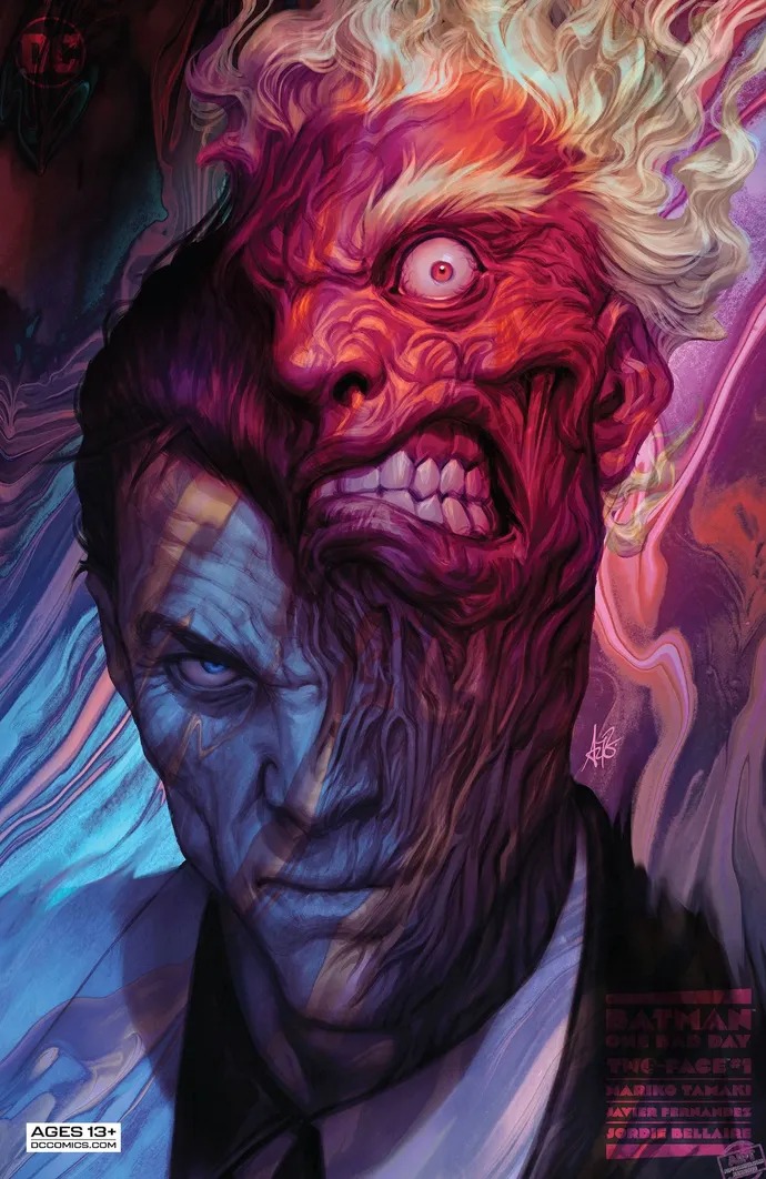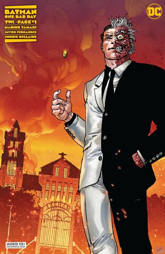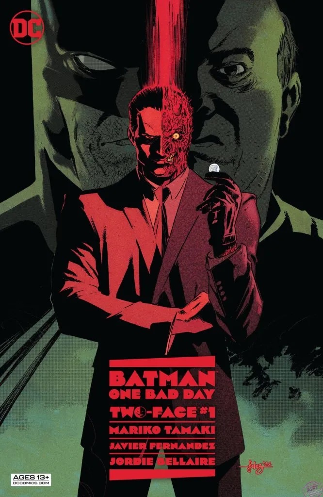 Two-Face has always been viewed as Batman’s most tragic villain. If only Harvey Dent hadn’t been scarred by acid, he could have continued his good work as D.A. in Gotham City and been Batman’s greatest ally and friend…right? Or has Batman extended Harvey Dent too much grace in his multiple attempts at reform? He’ll question himself as Harvey Dent is free once more, scarred but seemingly free of Two-Face’s influence. But…when it’s revealed Harvey Dent’s father has been threatened to be murdered on his 88th birthday, will Two-Face be able to resist joining the party? From the bestselling creative team of Mariko Tamaki (Detective Comics, Crush & Lobo) and Javier Fernandez (Nightwing, King Spawn)!