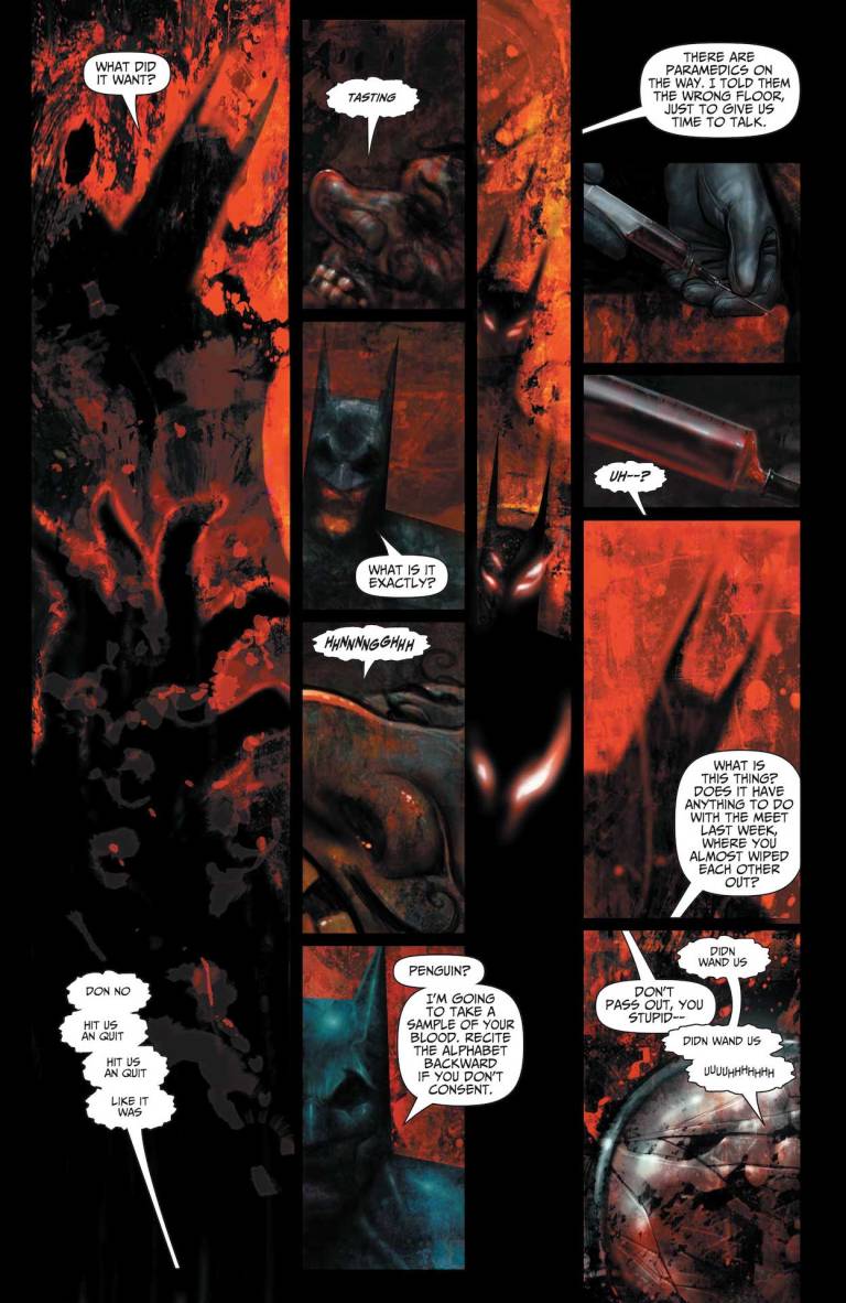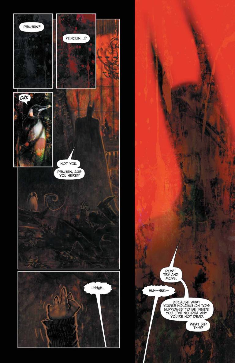Batman hits the streets in search of the creature terrorizing Gotham’s underworld-and hits them hard. First stop is the lair of the Penguin, but Oswald Cobblepot is at death’s door (which is better off than the beast left many of his cronies). The mangled rogue has no answers for Batman, but his blood-and the surprising secrets that it holds-will send the vigilante ever deeper into darkness…