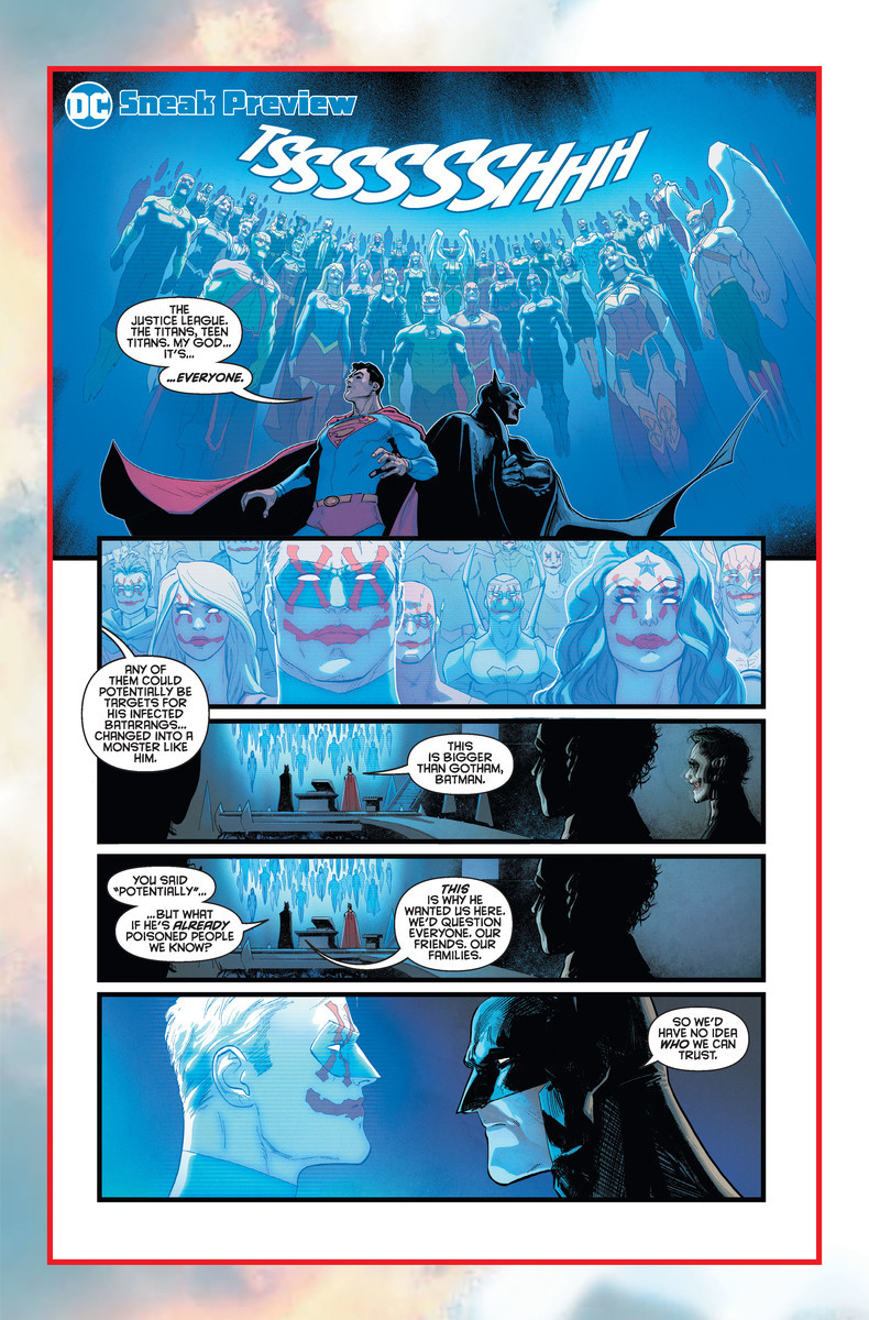 Up in the sky, in the dark of the night, trust no one—for the Secret Six walk among us. Spinning out of the devastating events of the Batman Who Laughs, Superman and Batman are together once more in an all-new monthly series—and they’re facing a terrifying new threat that could strike from anywhere. The Dark Knight and the Man of Steel must journey into the depths of Gotham City to learn which of their fellow heroes has been transformed into the horrifying horseman of their most dangerous and deranged foe ever. Our heroes will need to fight to survive, but an even more dangerous question lurks in the shadows: Can Superman and Batman even trust each other?