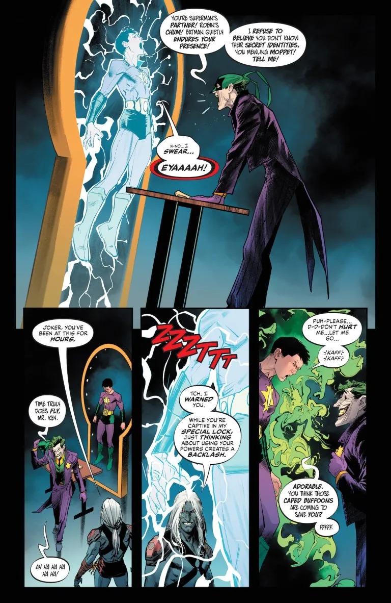 The deadly duo of The Joker and the Key have twisted the increasingly powerful Boy Thunder into a walking time bomb of destructive power! Batman and Superman’s quest to guide young David toward the light takes an unexpected turn when the Teen Titans learn of the dark secret he’s been hiding from the World’s Finest! The Titans issue their ultimatum–tell Superman and Batman, or they will!