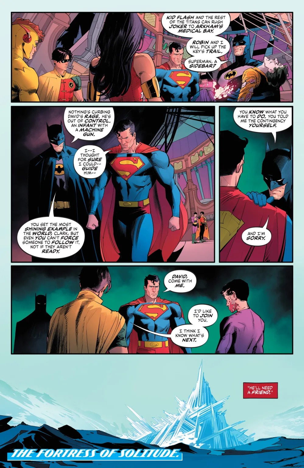 The saga of Boy Thunder crashes to a close as Batman, Superman, and the Titans frantically attempt to save their wayward ward! The choices the Dark Knight and the Man of Steel make in this moment will affect the future as we know it, as the secret identity of this über-powerful last son—that of someone DC fans have known for decades—is at last revealed!