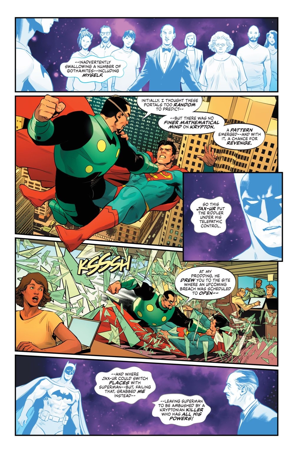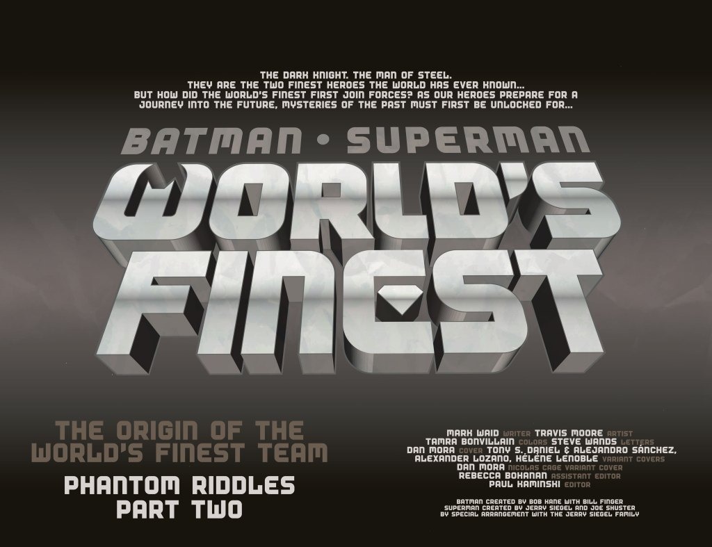 The origin of the World’s Finest Team concludes! What, of all things, could tie the Riddler and the Phantom Zone together—and what secrets will the Dark Knight and the Man of Steel learn about one another that will define their friendship? All this, and a lead-in to an upcoming event set in the present day!