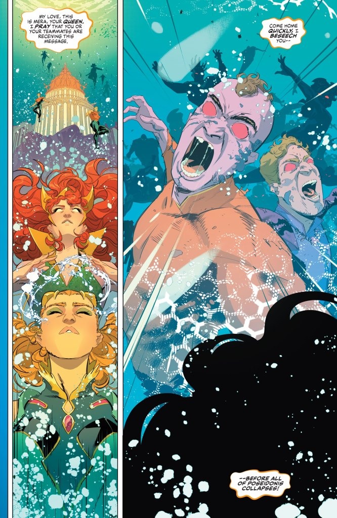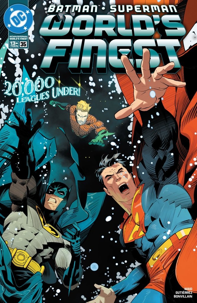 A distress call from Atlantis has brought Batman and Superman deep beneath the waves…and face to face with the king himself: Aquaman. But this man of two worlds harbors a secret, and it will be up to the Dark Knight and the Man of Steel to thwart a coup that threatens the peace of all undersea life! A new story arc begins as the World’s Finest travel under the sea with new ongoing series artist Adrián Gutiérrez!