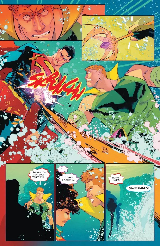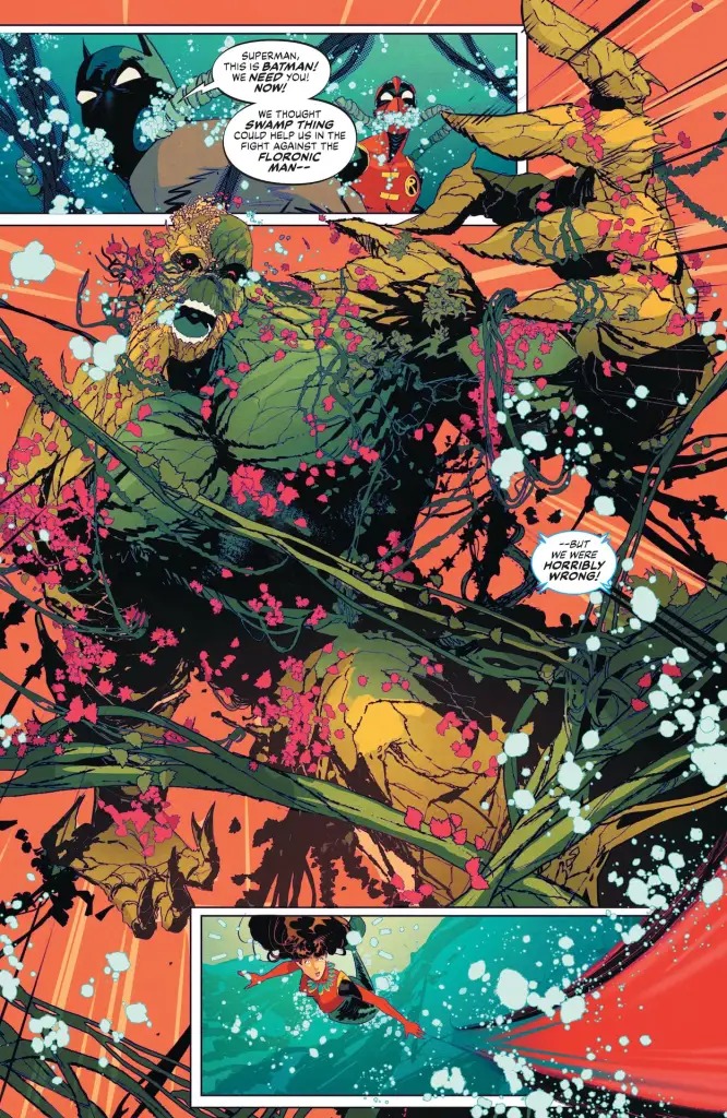 THE WAVES CRASH! Superman and Batman have a code against killing… but does a king of Atlantis? As the Floronic Man makes his final play for dominion over the seas, Aquaman is forced to react as a warrior, not a superhero — and the consequences will surprise you!