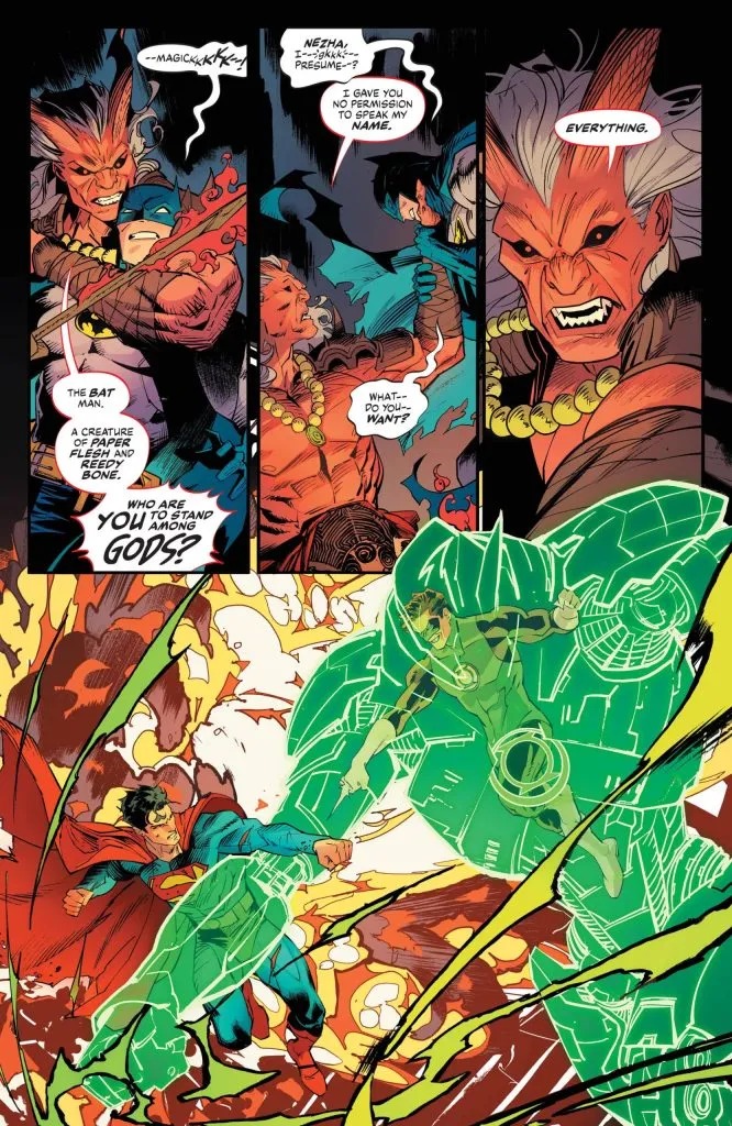 As Robin and Supergirl race to retrieve the secrets of the Devil Nezha from ancient China, Batman and Superman get more than they bargained for in the present! To save humanity from the fires of the demon, the World’s Finest must go toe-to-toe with the protector of Sector 2814…Hal Jordan.